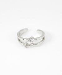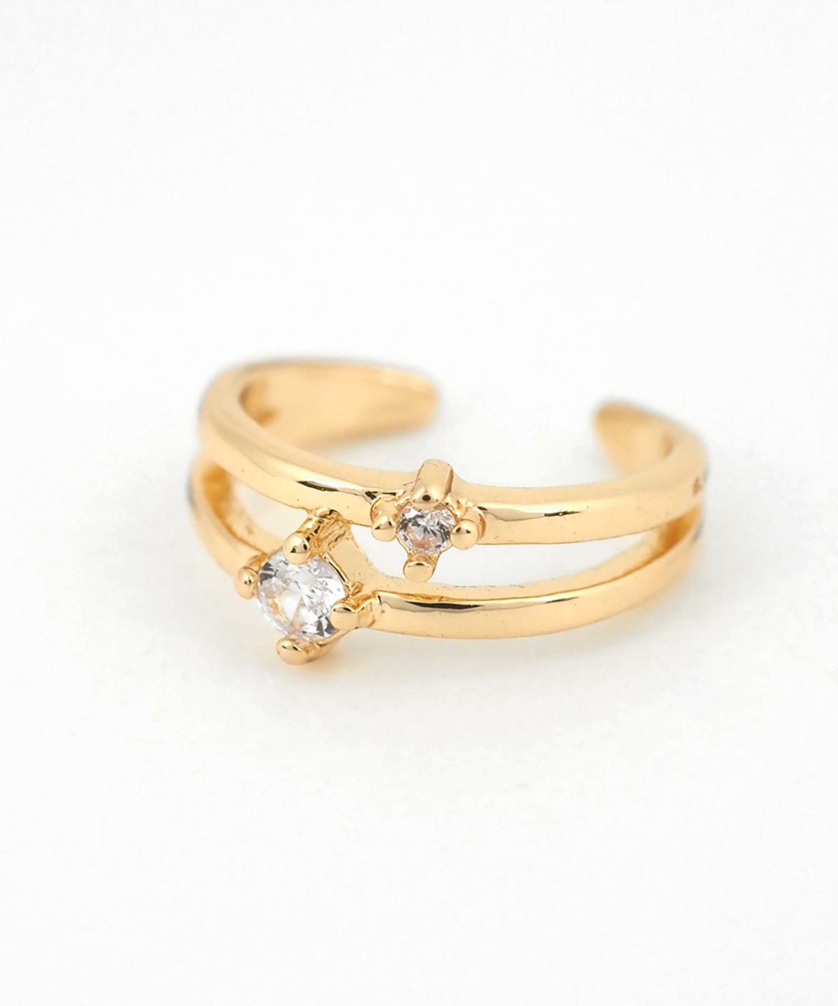 耳元に寄り添うように配置された、繊細な2粒のストーンが煌めくイヤーカフ。ミニマルなデザインで、どんなスタイルにも合わせやすく、お手持ちのピアスやイヤリングとの重ね付けもおすすめ。日常のオシャレをさりげなくランクアップさせてくれる、頼れる一点です。ピアスの穴の有無に関わらず楽しめ、コーデ不要でおしゃれが叶います。片耳用です。