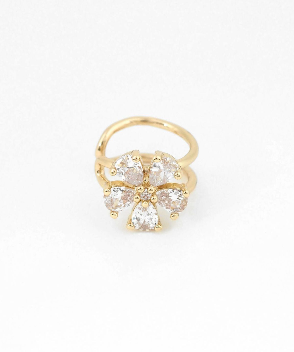 透明感あふれるビジューで形作られたお花が、耳元にパッと華やぎを添えるイヤーカフ。光を浴びるたびにキラキラと瞬き、大人の女性にふさわしい「さりげない品格」を演出します。お手持ちのピアスやイヤリングとの重ね付けもおすすめ。日常のオシャレをさりげなくランクアップさせてくれる、頼れる一点です。ピアスの穴の有無に関わらず楽しめ、コーデ不要でおしゃれが叶います。片耳用です。
