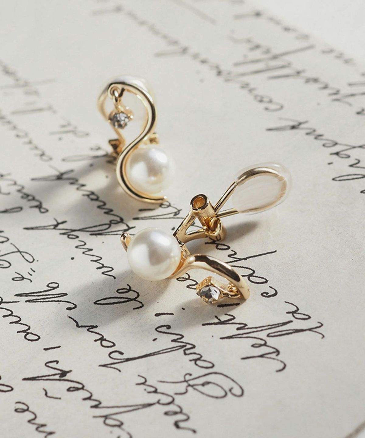 優雅なS字カーブを描くメタルラインに大粒パールを添えたクリップイヤリング。シンプルながらも上品でエレガントな華やかさがあります。結婚式やパーティーなどのオケージョンシーンにも最適です。金具を開いてパチッと挟むだけの簡単で痛くなりにくいクリップ式です。