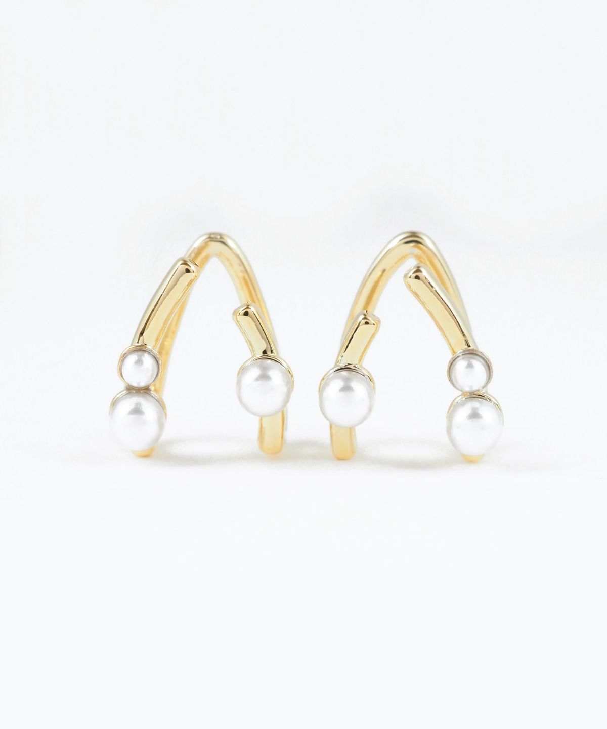 重ね付け風のデザインが魅力のラウンドメタルイヤリング。大小異なるサイズのパールをあしらい、どの角度から見ても表情豊かな仕上がりに。立体的なデザインが、いつものカジュアルコーデに「こなれ感」をプラスしてくれます。