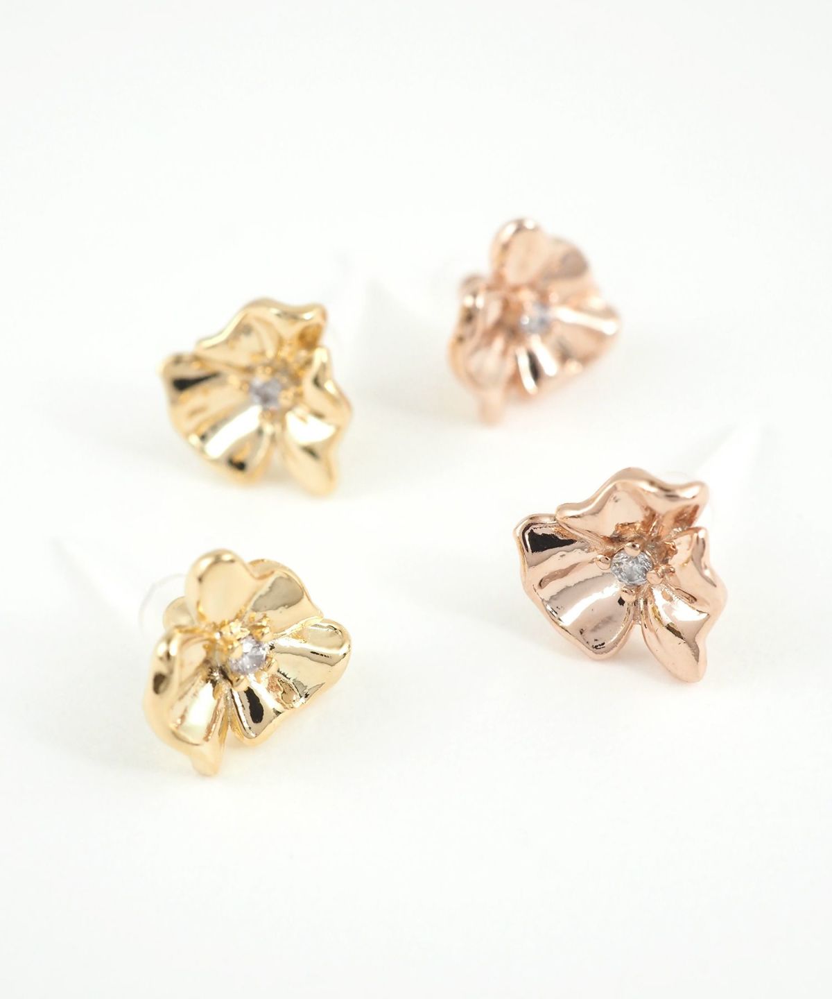 メタルフラワーキュービックセラミックポストピアス