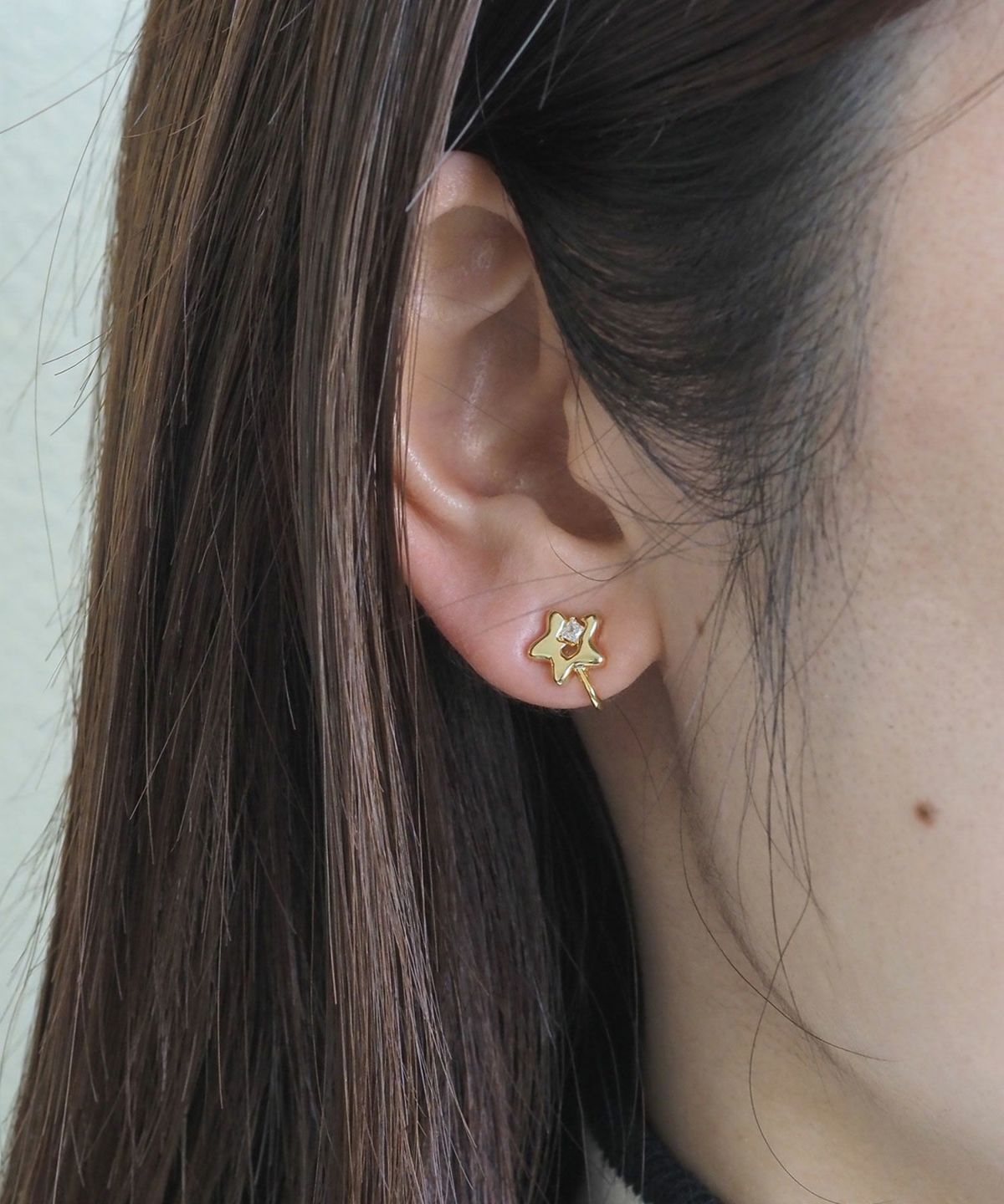 ぷっくりとした星のモチーフが可愛らしいラウンドメタルイヤリング。星の中心には、四角いキュービックジルコニアをセッティング。動くたびにキラリと繊細な輝きを放ち、顔周りを華やかに見せてくれます。普段のコーデに取り入れて、遊び心のある雰囲気に。