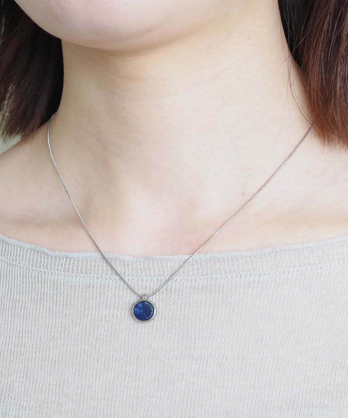 ラウンドベゼルストーンサージカルステンレスネックレス【Zoule】
