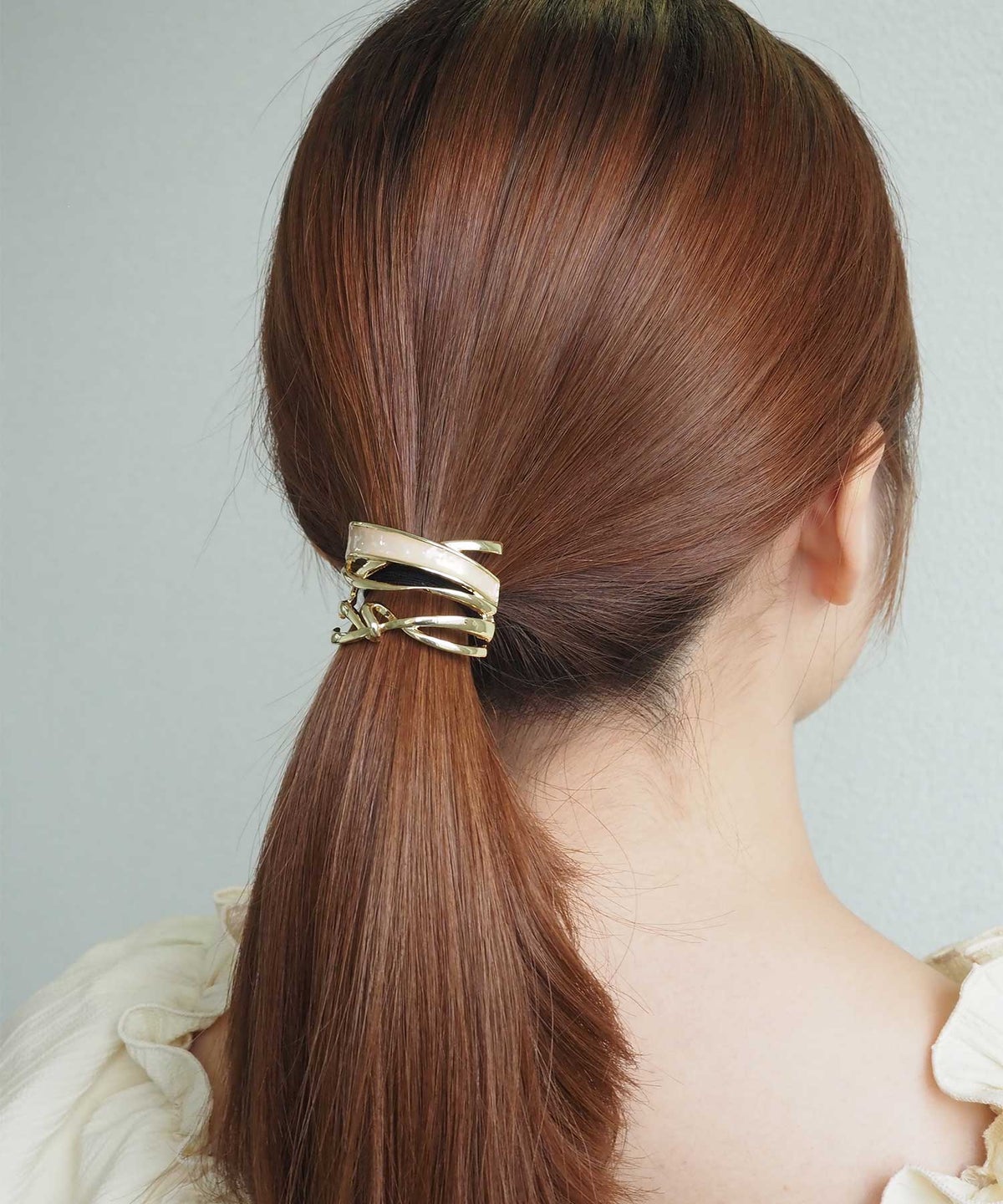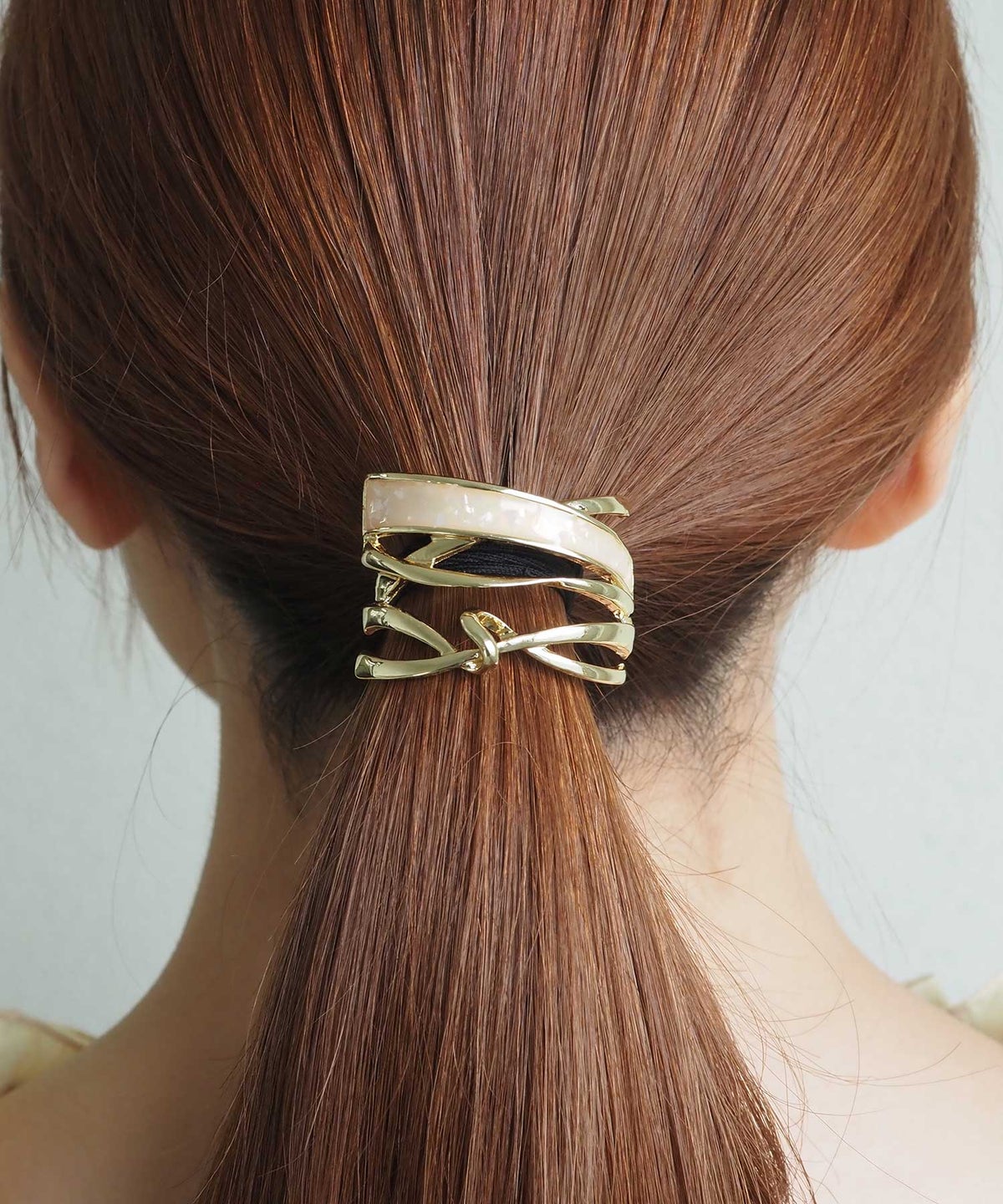 艶めくシェルとニュアンスラインが上品な印象を与えるポニーフック。髪を束ねたヘアゴムの結び目に差し込むだけでアクセントに。幅広いコーディネートに対応、デイリー使いにも重宝します。
