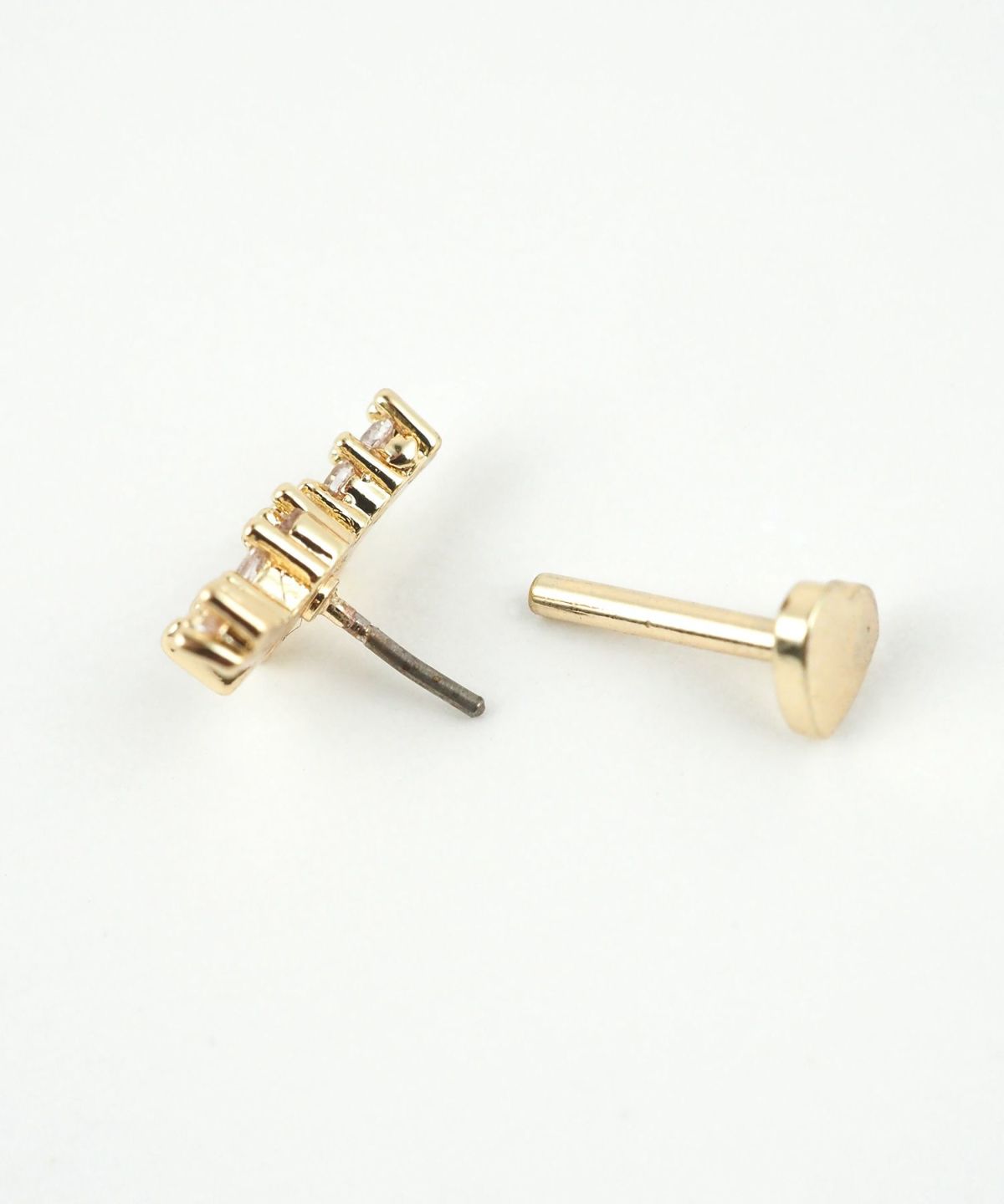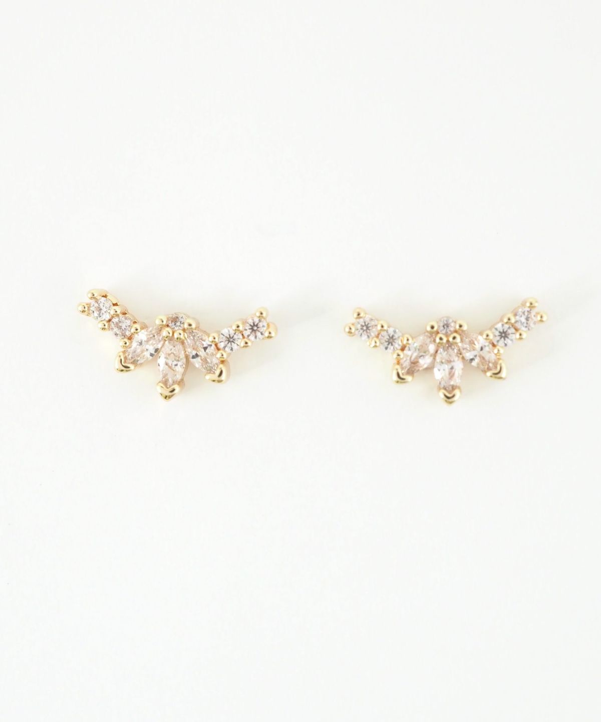 繊細なティアラのようなシルエットのサージカルステンレスポストピアス。 光を多方向に反射し、小ぶりながらもお顔周りをパッと明るく華やかに彩ります。差し込むだけで装着可能なスレッドレスタイプ。ペアピアス(両耳用)です。