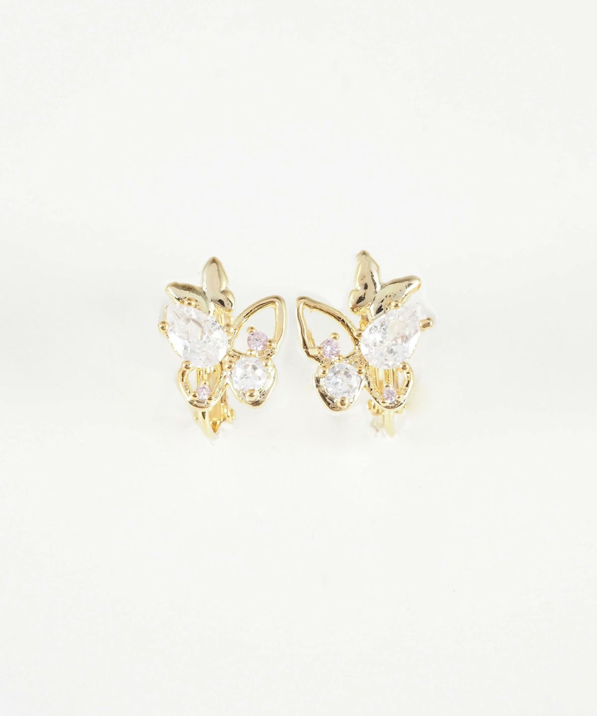 シャディソフィーで人気の春らしいチューリップや蝶々(ちょうちょ)をモチーフにしたイヤリング。キュービックジルコニアの輝きが着けるだけで心ときめくキュートな横顔を演出します。