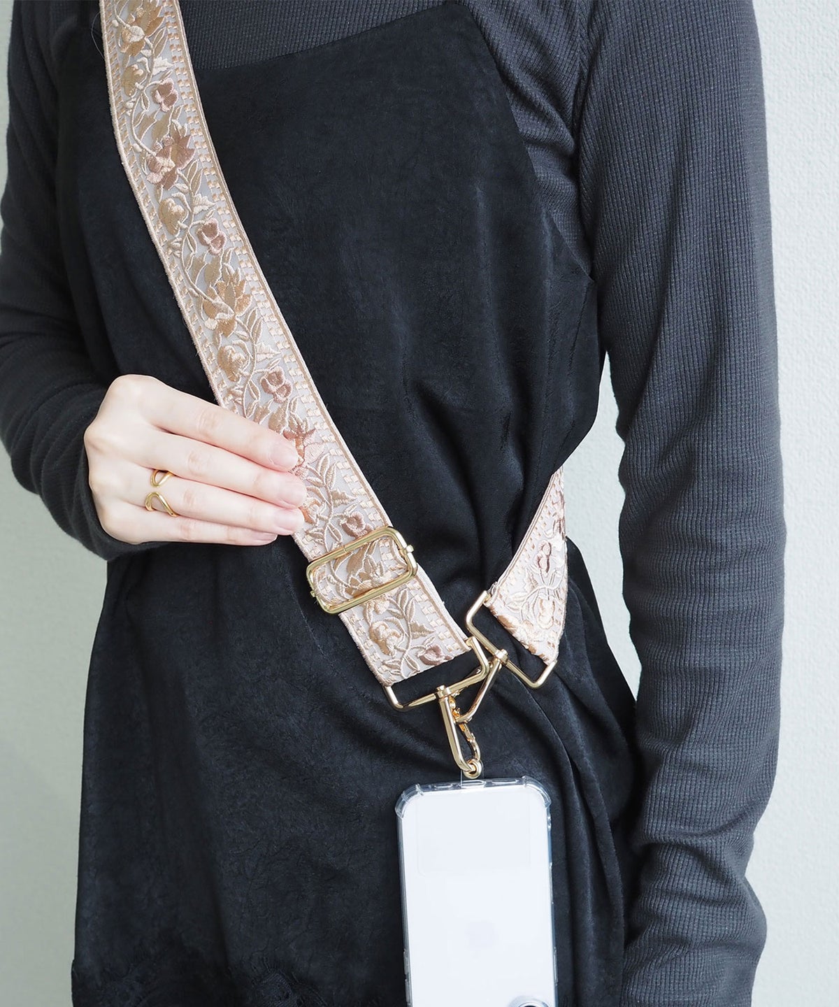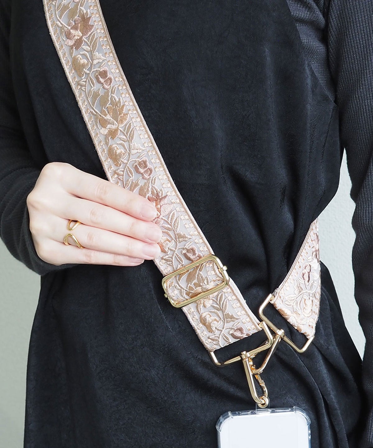 • ボタニカル刺繍リボンマルチショルダーストラップ