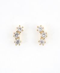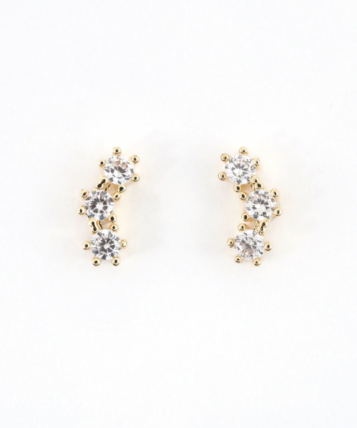 上品な煌めきが横顔を華やかに彩る、サージカルステンレスポストピアス。 3つのキュービックジルコニアを、緩やかなカーブ状に配置。 耳のふちに沿うようなデザインは、お顔まわりに洗練された印象を与えます。 派手すぎないサイズ感ながら、光を受けるたびにキラキラと輝き、デイリーからフォーマルまで幅広く活躍します。差し込むだけで簡単に装着可能なスレッドレスタイプ。ペアピアス(両耳用)です。