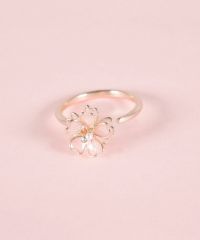ピンクゴールドのフレームに、透き通るような花びらをあしらった桜(さくら)モチーフリング。立体感のある繊細なデザインが、いつものコーデに上品な甘さをプラスします。控えめながらも華やかな存在感で、デイリーから特別な日のお出かけまで、手元に彩りを添えどんなシーンにも品よく馴染みます。