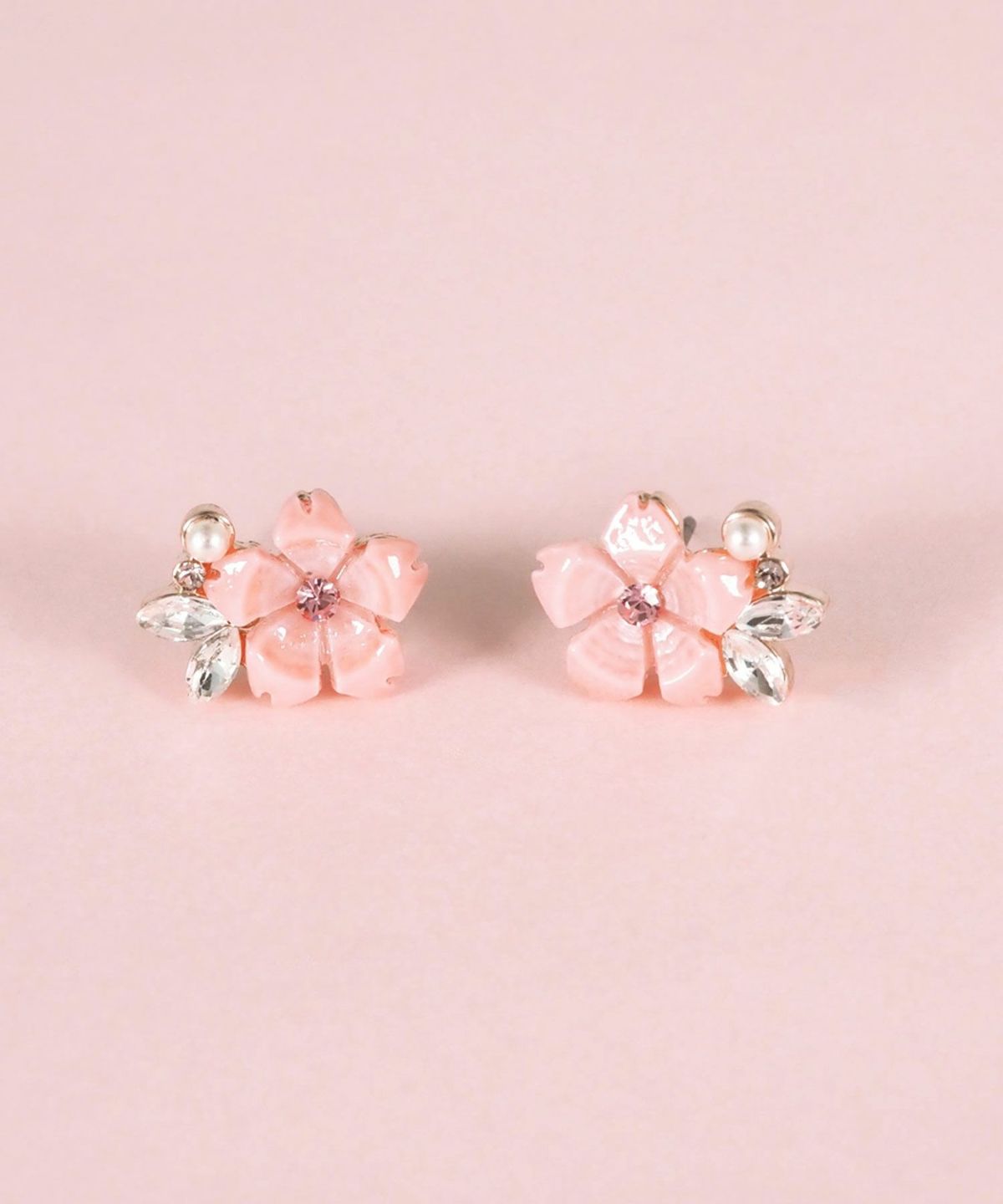 柔らかなピンクの桜(さくら)にパールとドロップビジューを添えたピアスです。花びらから煌めくドロップデザインが、お顔周りをパッと明るく見せてくれます。春の訪れと華やかさを添える、特別な日の装いにも日常使いにもぴったりのアイテムです。ペアピアス(両耳用)です。