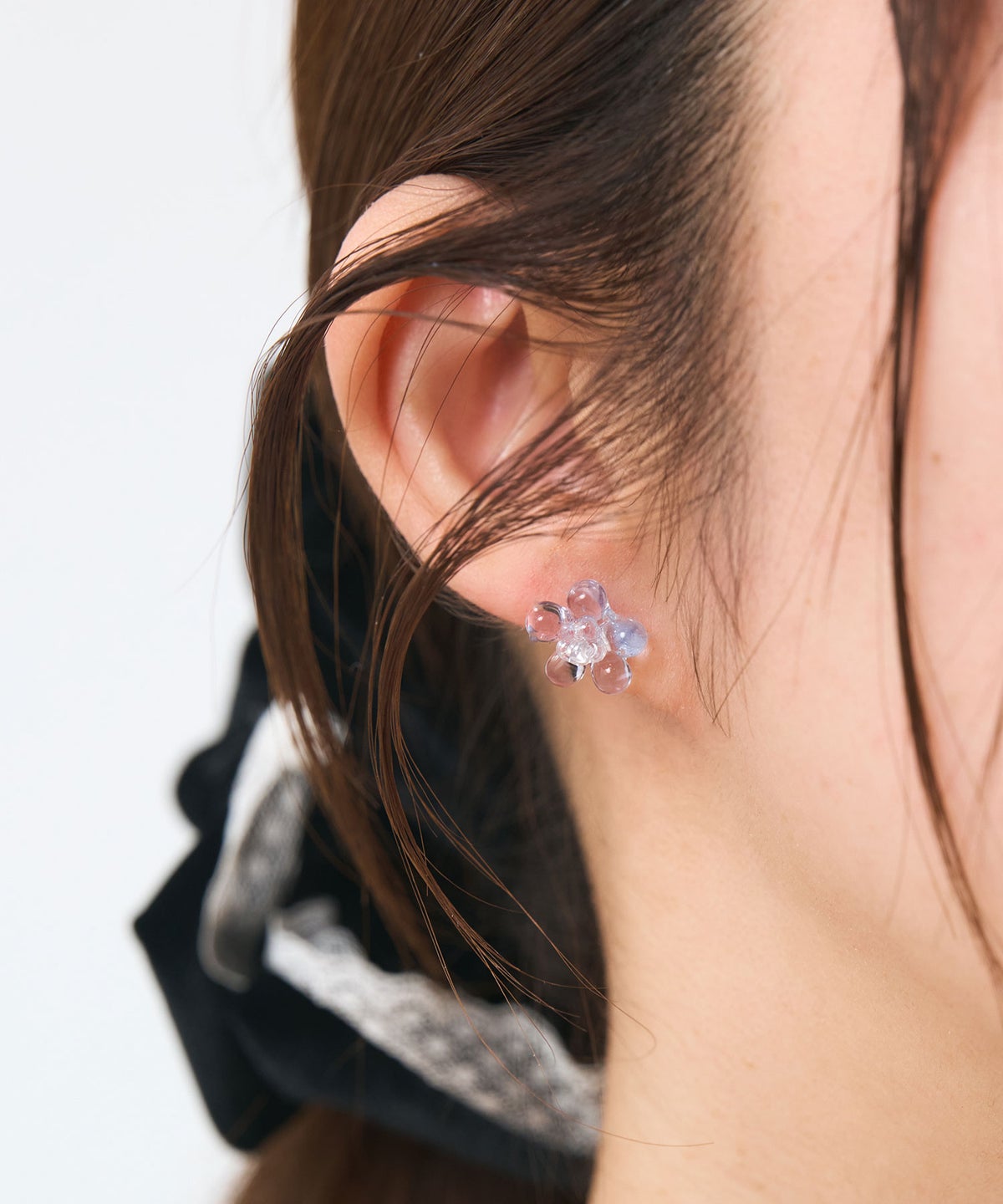 透明感あふれる花びらが、耳元に瑞々しい華やぎを添える樹脂ポストピアス。 光を反射するぷっくりとしたフォルムが、横顔に大人可愛いアクセントをプラス。樹脂製のポストで、金属アレルギーからお肌を守ります。 ペアピアス(両耳用)です。