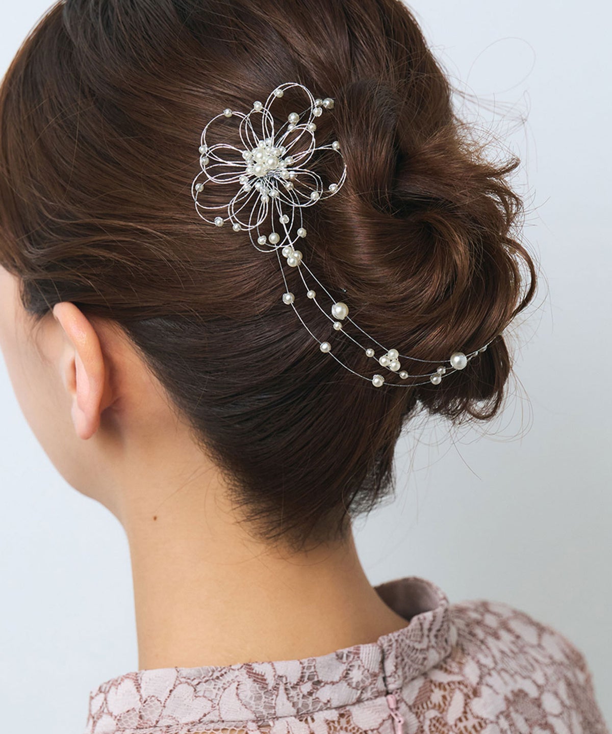 ヘアスタイルを華やかに彩ってくれるヘッドドレス。 ワイヤーで模られたお花が、華やかで上品な雰囲気を演出します。 柔らかなワイヤーでできているため、アレンジに合わせて形が変えやすいことも嬉しいポイント。 シニヨンの上にのせたり、お団子に巻いたり、サイドに沿わせたり、複数のアレンジが楽しめます。 結婚式や発表会、舞台などはもちろん、パーティーシーンにおススメです。