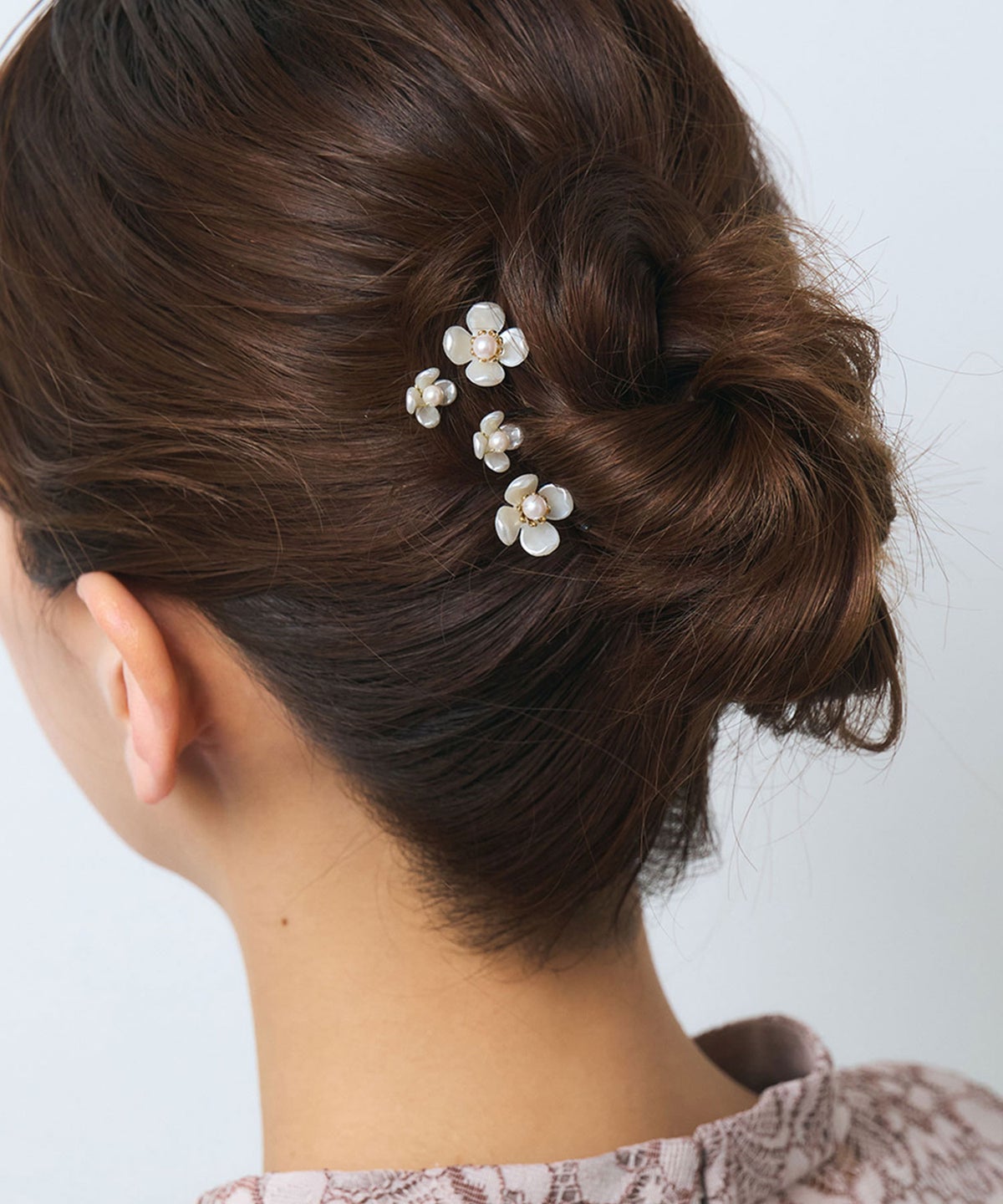 フォーマルなシーンにふさわしい、凛とした美しさが際立つお花のUピン4本セット。派手すぎない落ち着いた光沢と、細部までこだわった立体的なフラワーモチーフが、大人の女性の優雅さを引き立てます。ドレスはもちろん、和装にもぴったり。ワイヤーは調整ができるので、お好みの形に調整していただけます。