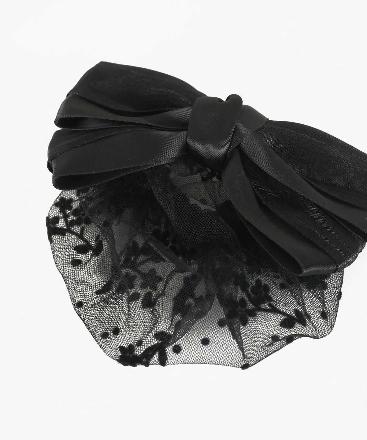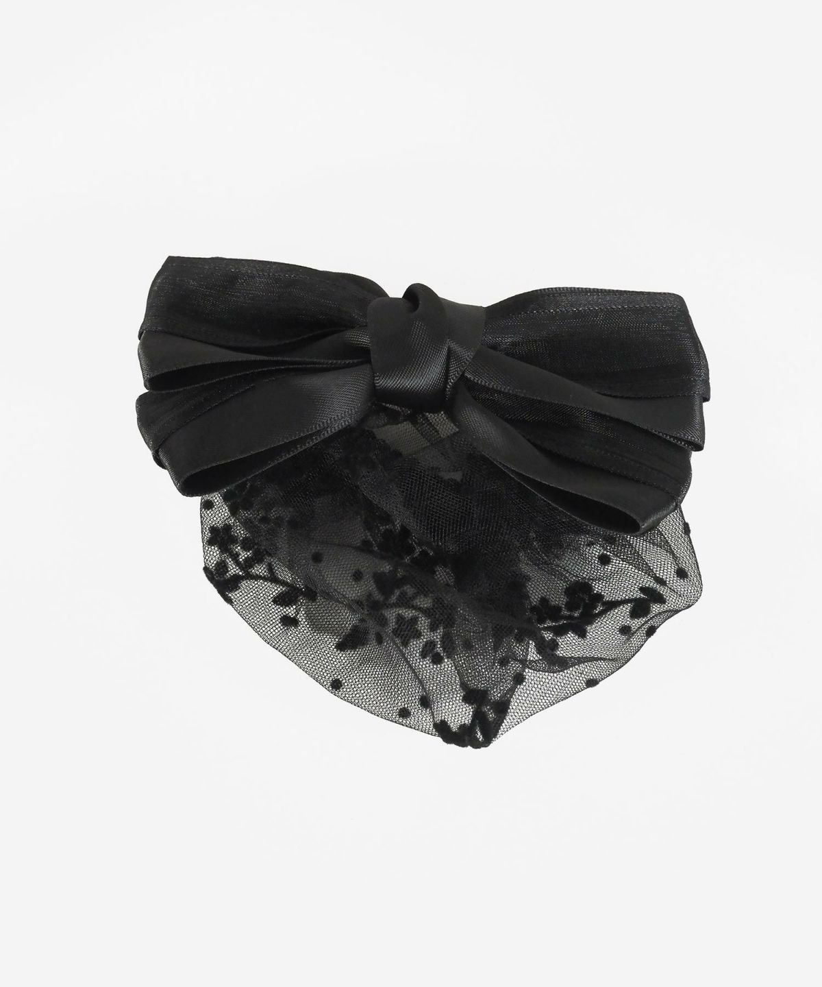 フラワーネット付レイヤードリボンバレッタ