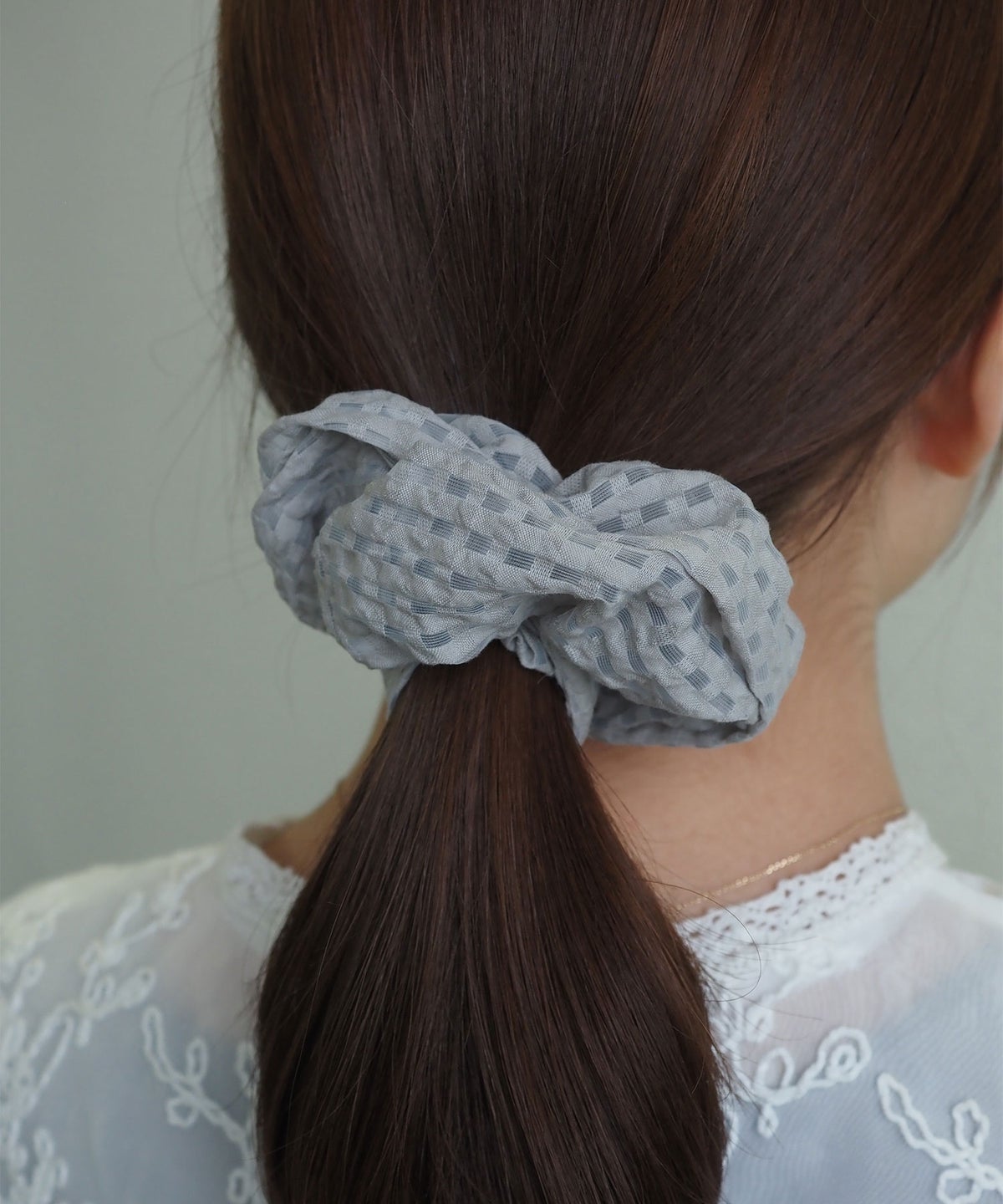 チェック柄のトラッドな印象を、シアー素材で軽やかにアップデート。 光を透かすシースルー生地が、重くなりがちなまとめ髪に「抜け感」と「涼やかさ」をもたらします。