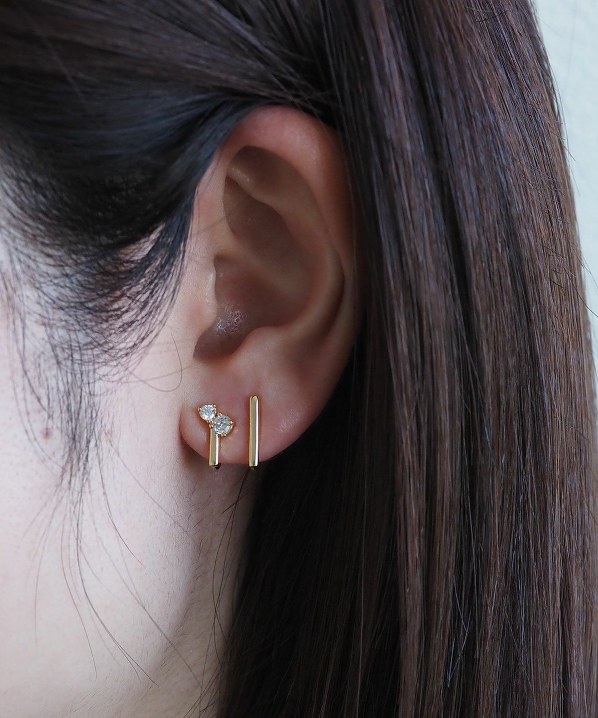 • ツインジルコニア&バーラウンドメタルイヤリング