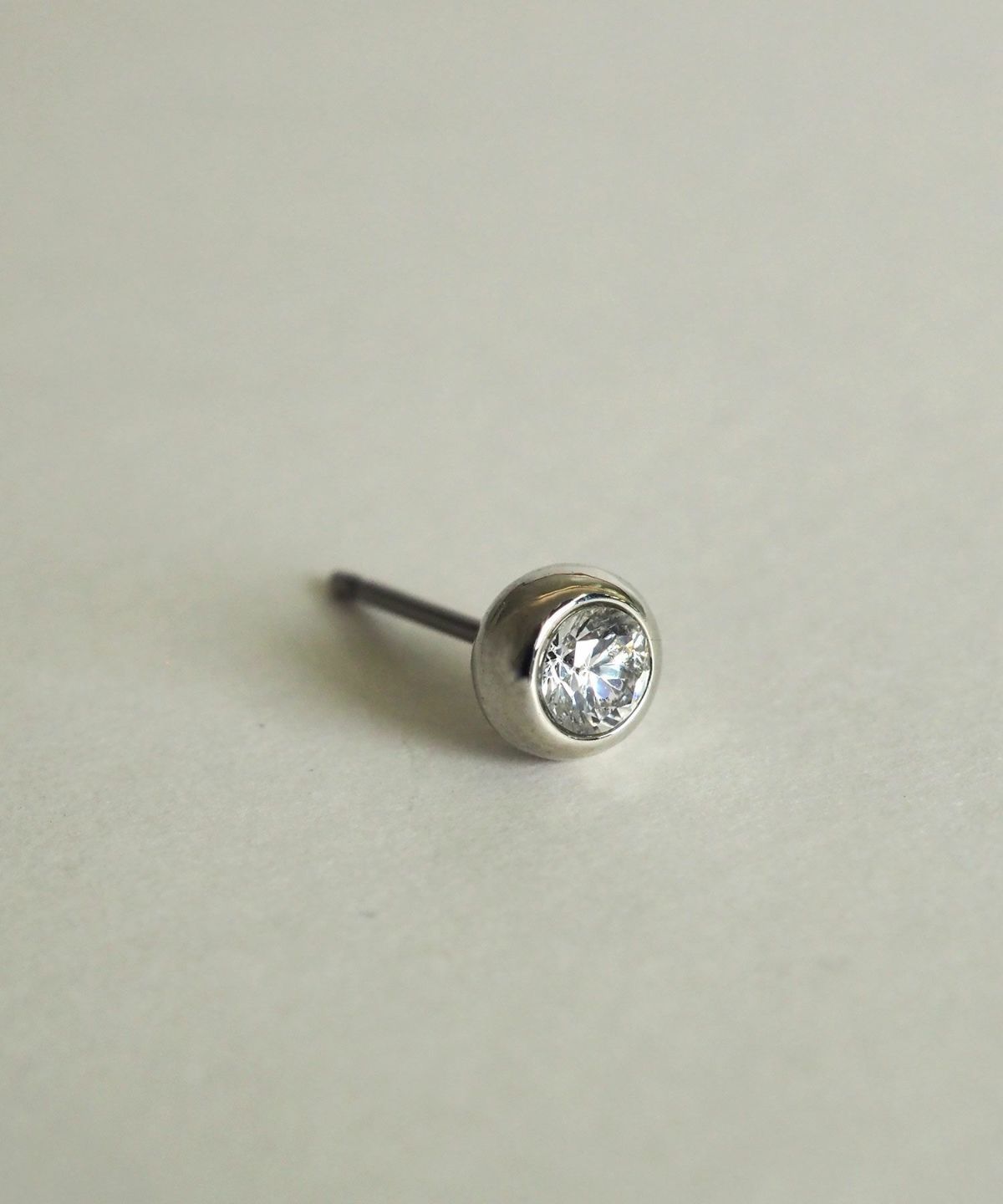 一粒のキュービックジルコニアをメタルでぐるりと囲ったプチピアス。控えめな甘さで日常使いしやすいシンプルデザインが魅力です。ペアピアス(両耳用)です。