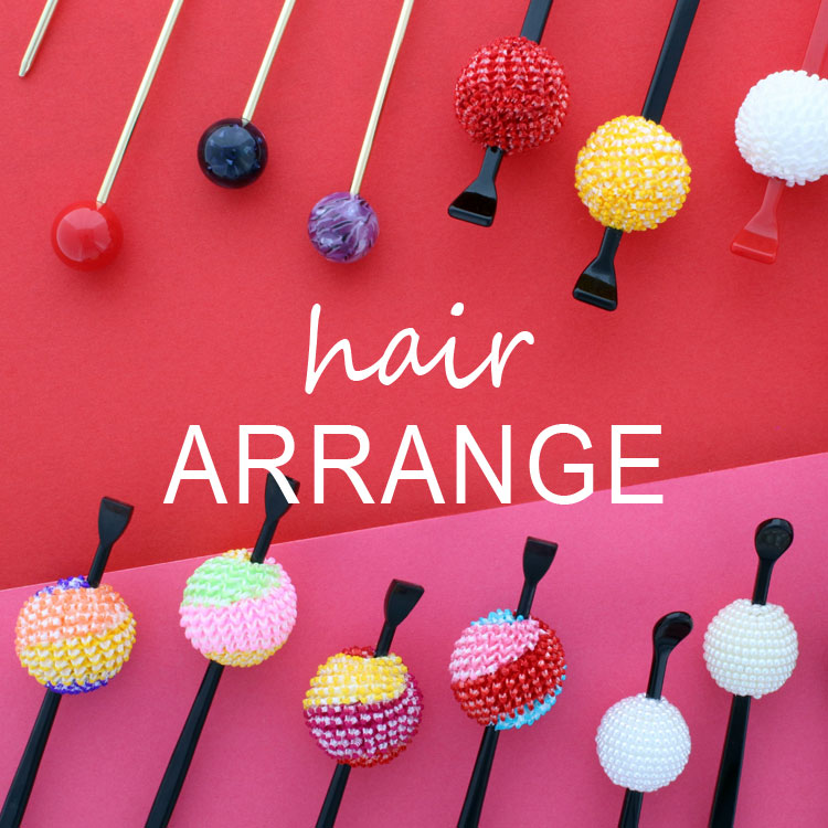 浴衣といえば、定番のかんざし。和風美人な後ろ姿に仕上がります。シンプルで大人っぽいものから、ちりめん素材のキュートなものまであるので、ぜひトライしてみて。