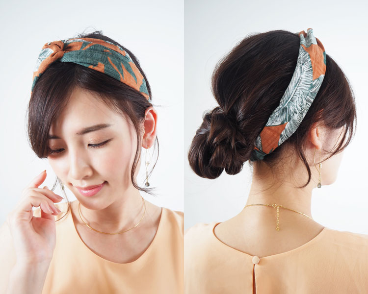 ターバンはボタニカル柄を選べば、一気に夏らしい印象になりますね。コーディネートのアクセントにもなるので、特にこれからの時期にオススメのヘアアクセサリー。