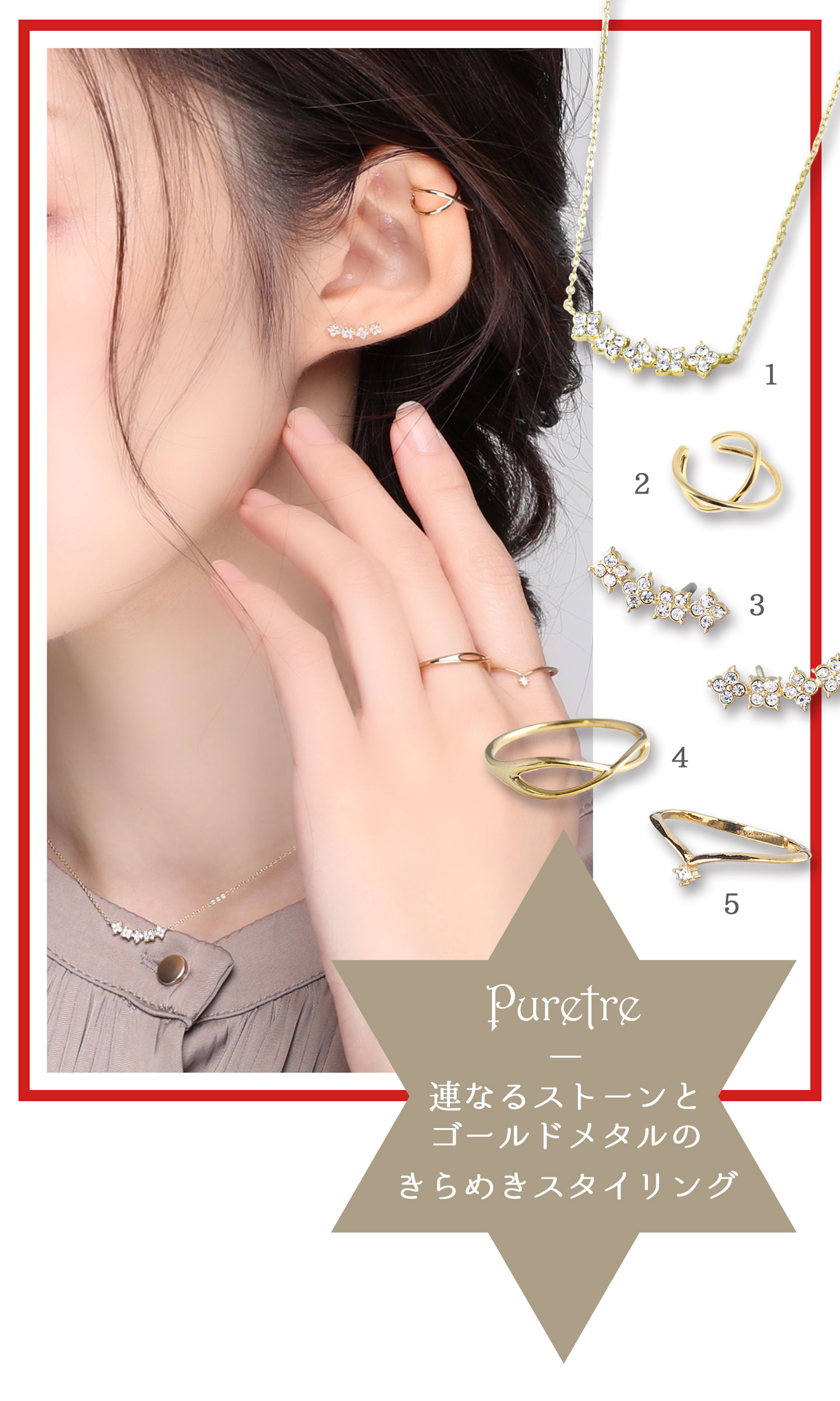 1)パール付ストーンフープチタンポストピアス/2,640円 ≫