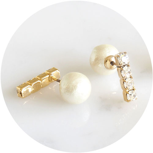 4.パールキャッチで後ろ姿可愛い♡リバーシブルで使えます。[ラインストーンパールキャッチ2wayピアス【MUK voyalibre】2,750円] |