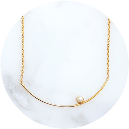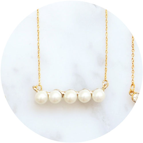 8.パールが直線に並ぶハンサムデザイン。凛とした雰囲気で存在感があり、洗練された印象に。[パールハングネックレス【MUK voyalibre】1,760円] |