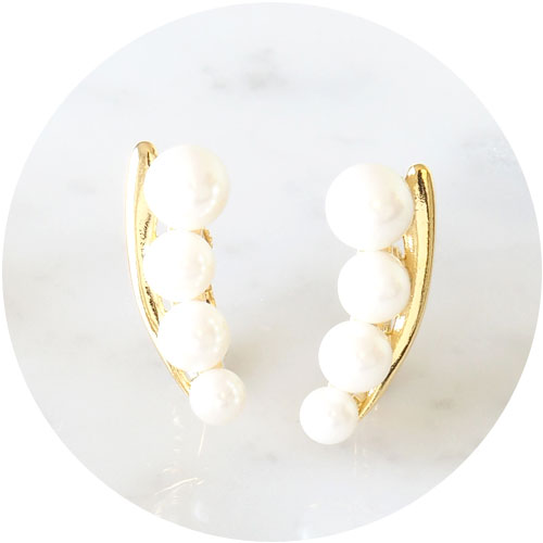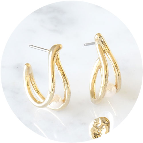 13.緩やかな弧を描く女性らしいデザイン。長時間着けていても痛くないイヤリング。[カーブパールラインIMFスプリングイヤリング 1,760円] |