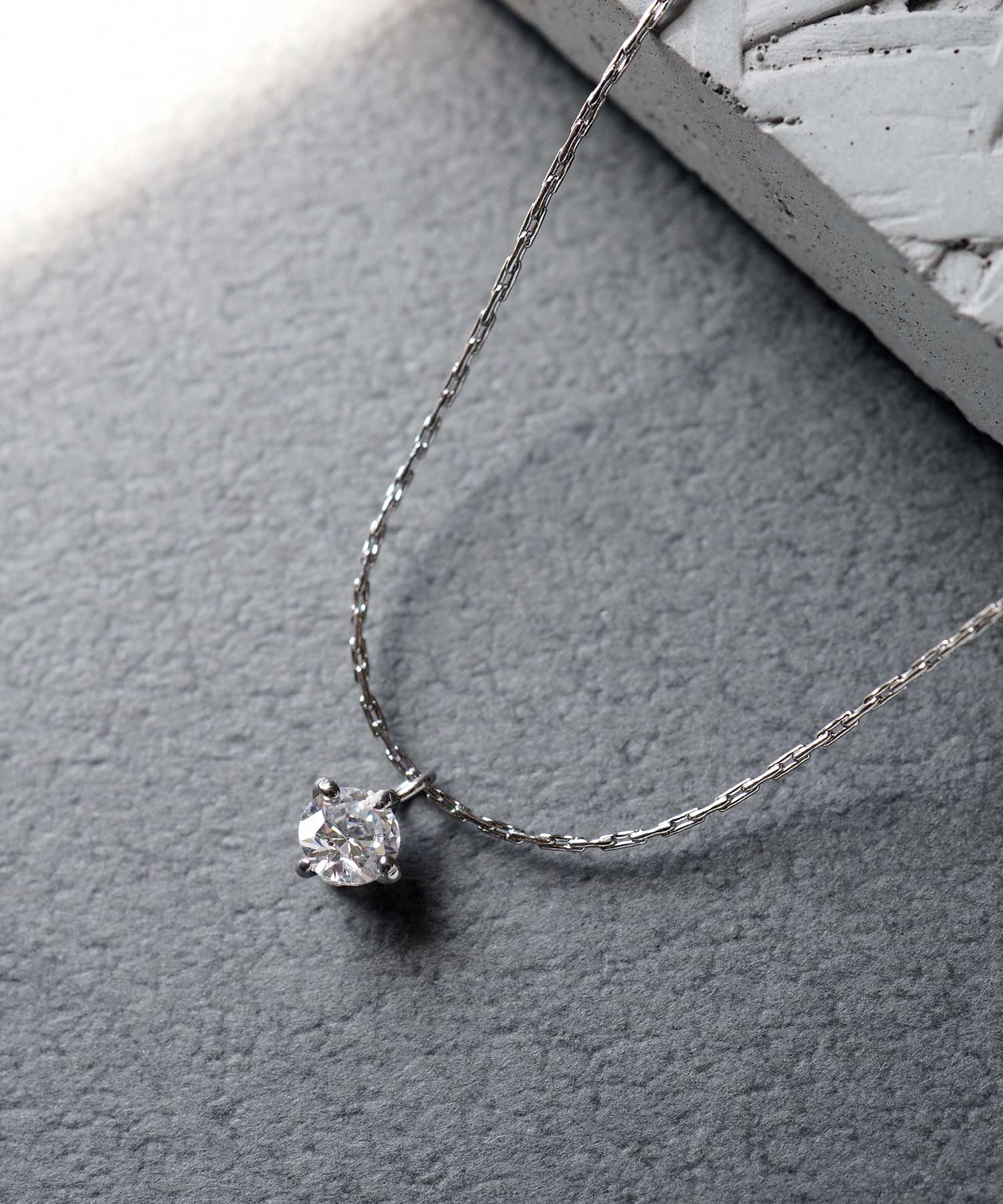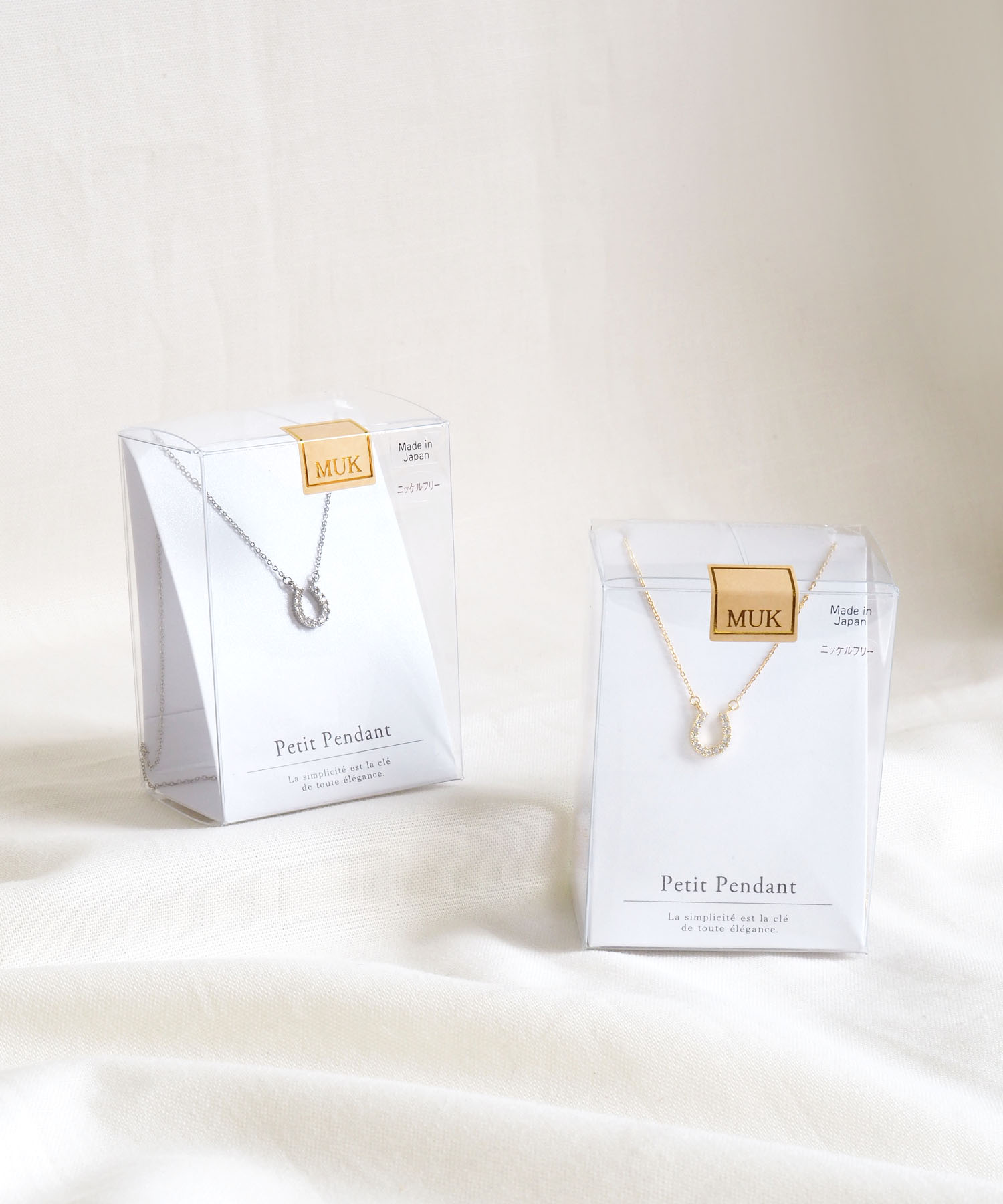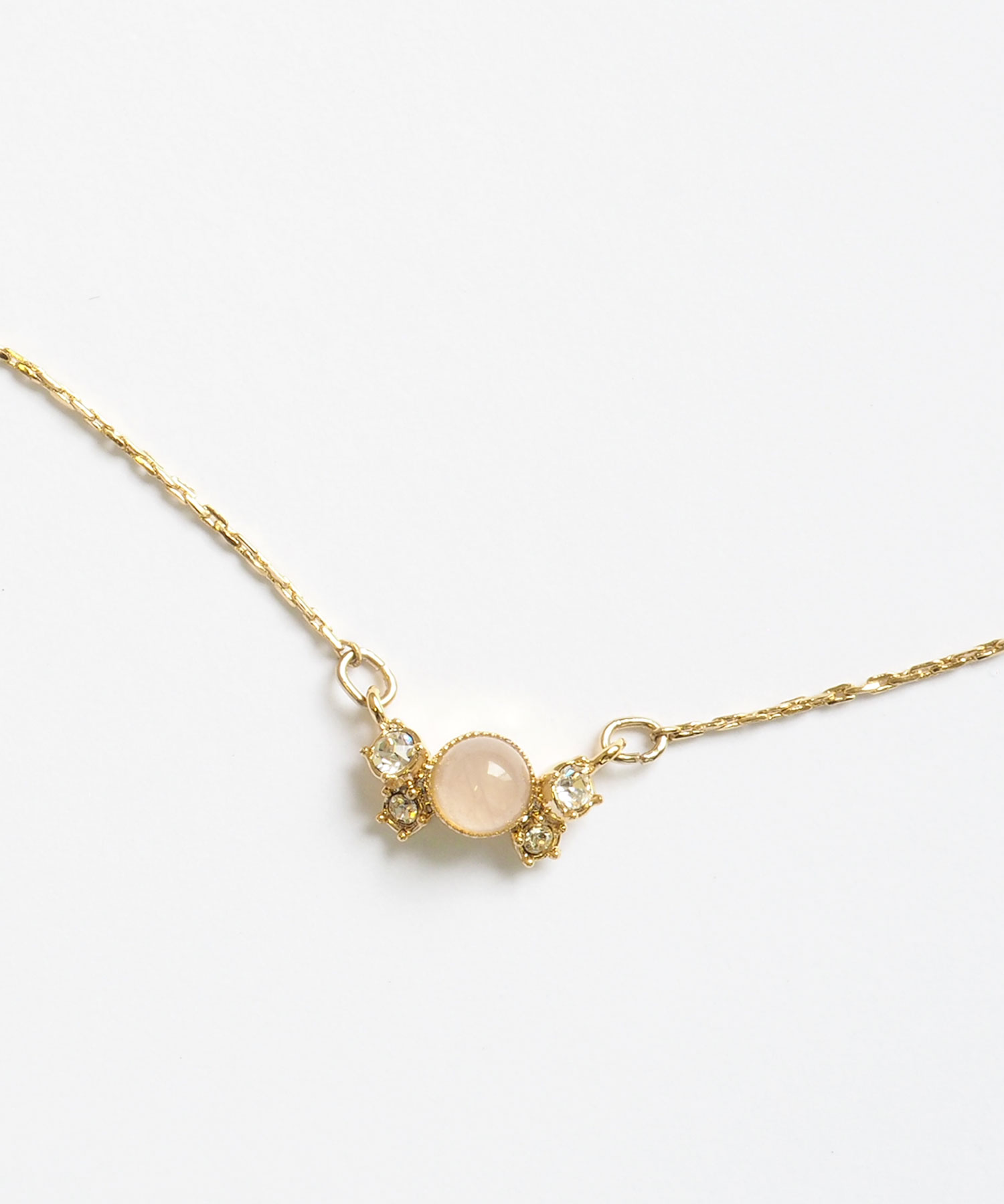 フェミニンな雰囲気のラウンドネックには小振りなプチペンがマッチ。