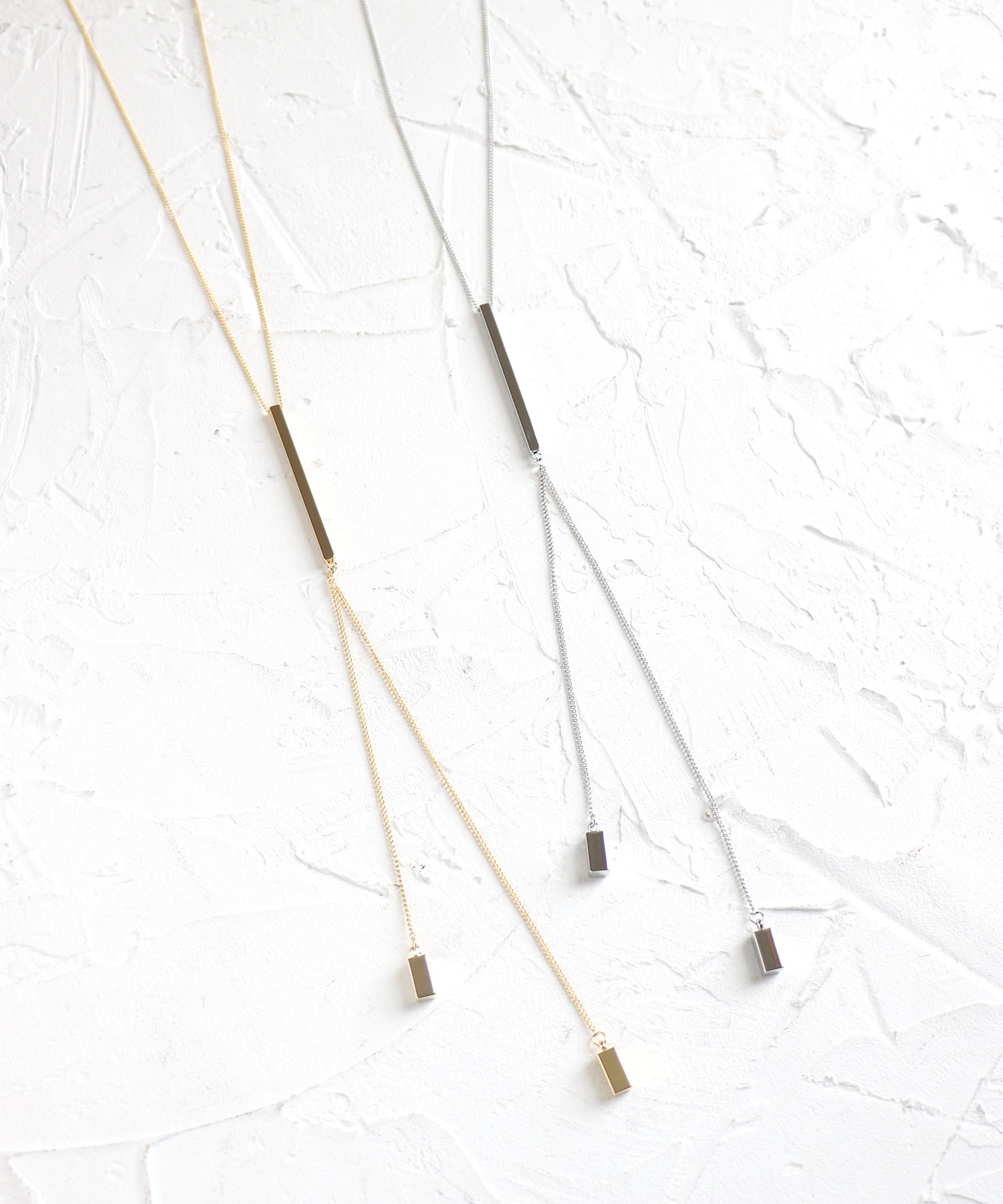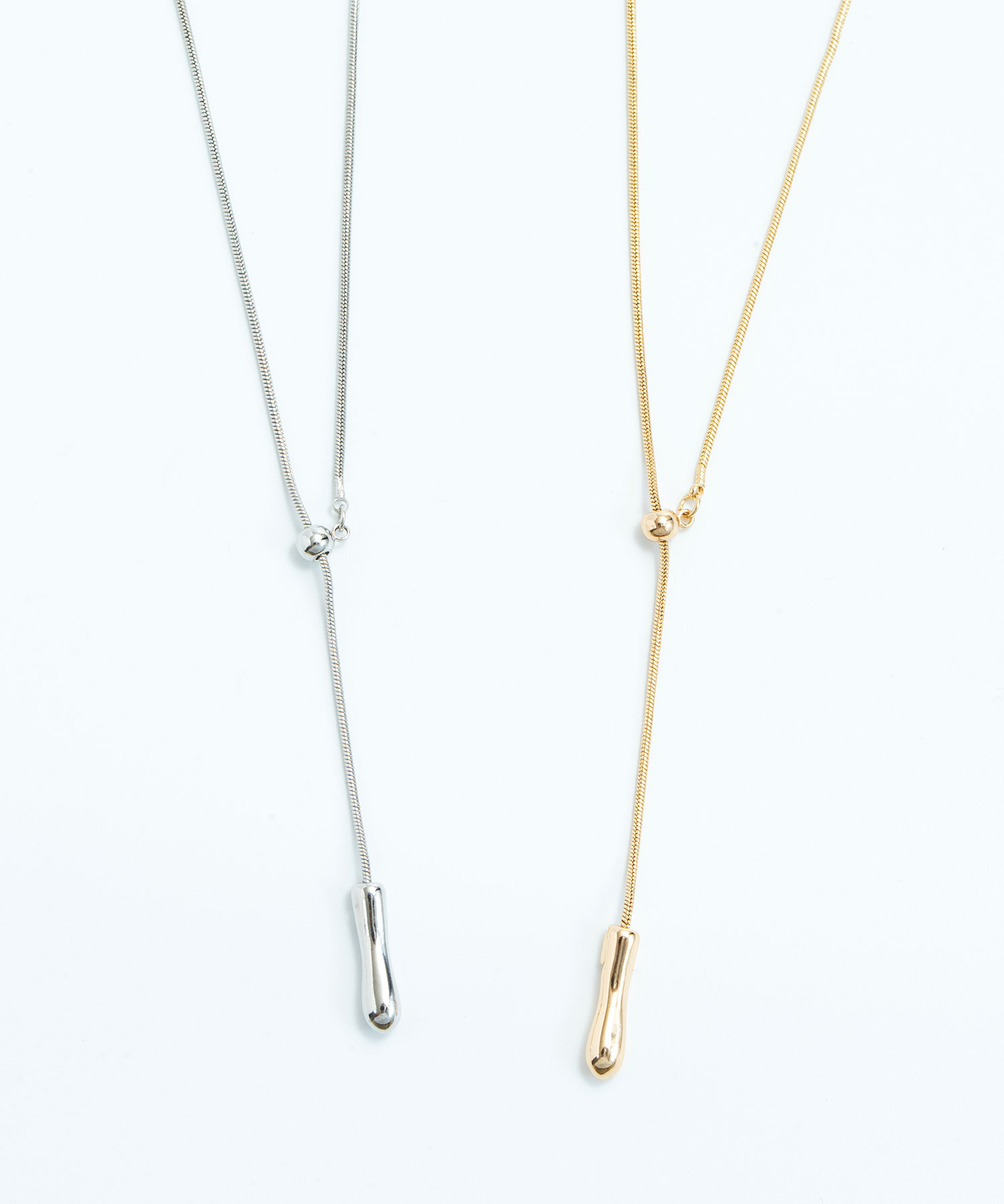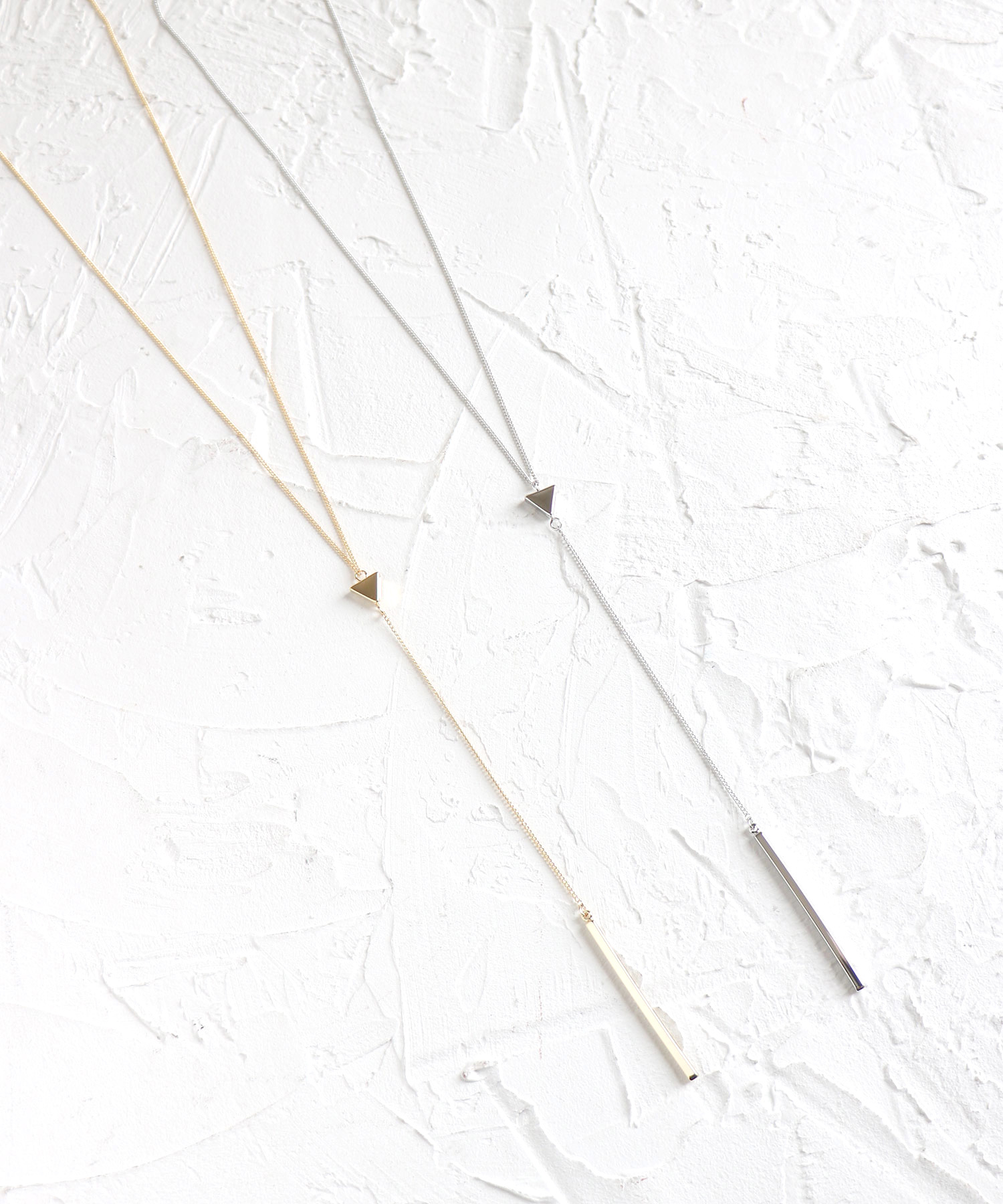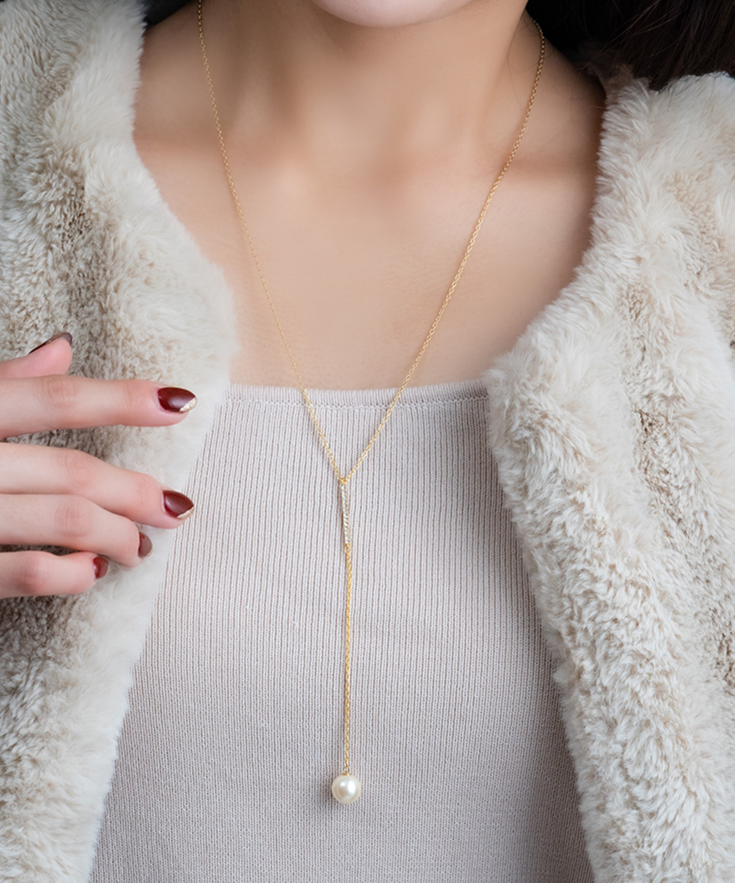 トレンドのY字ネックレスは縦長効果でフェイスラインをシャープに見せてくれます。