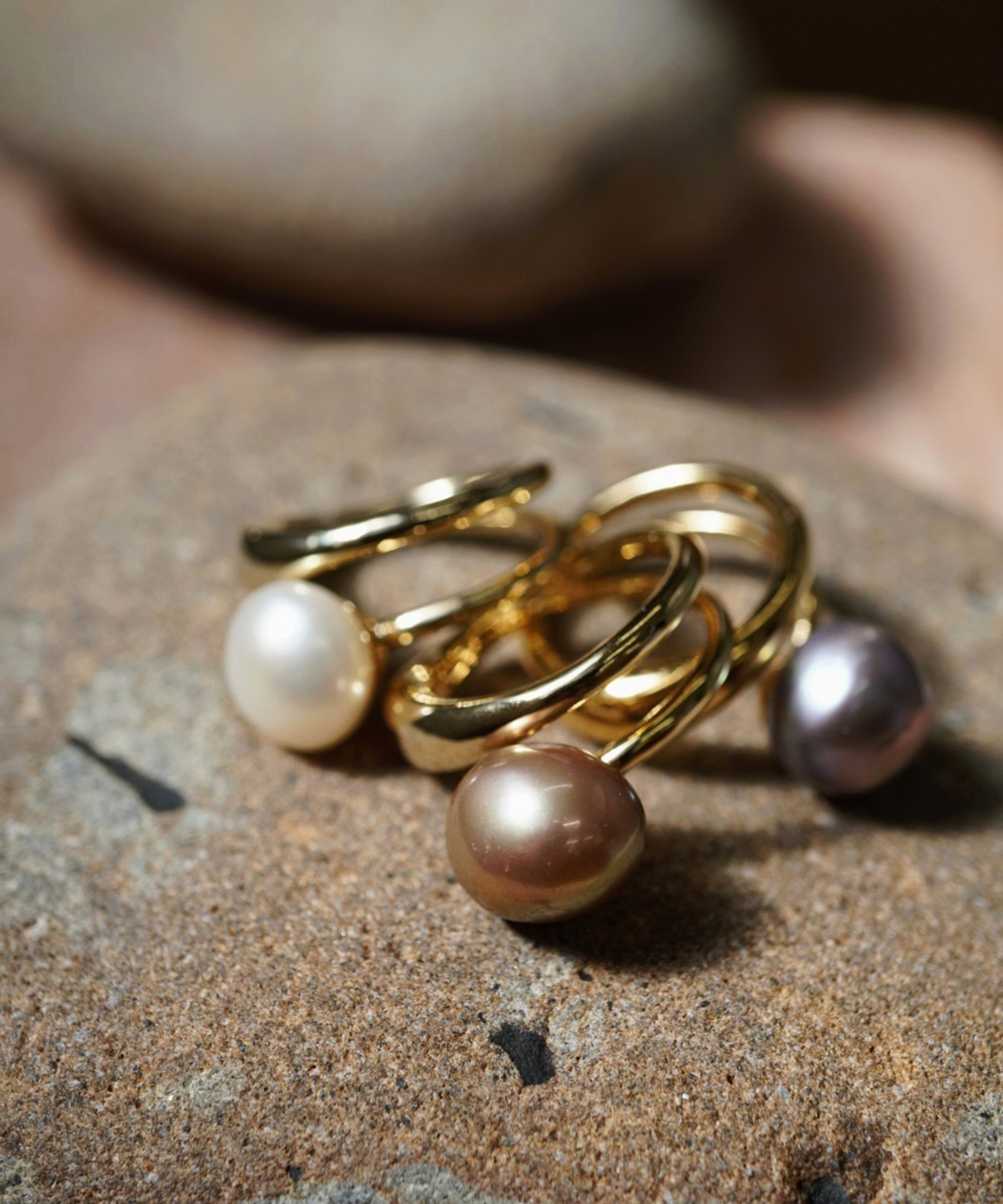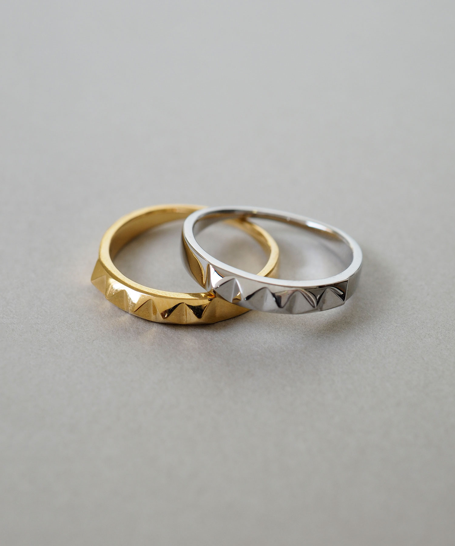 ノーカラーのジャケットにはシンプルなメタルがおすすめ。