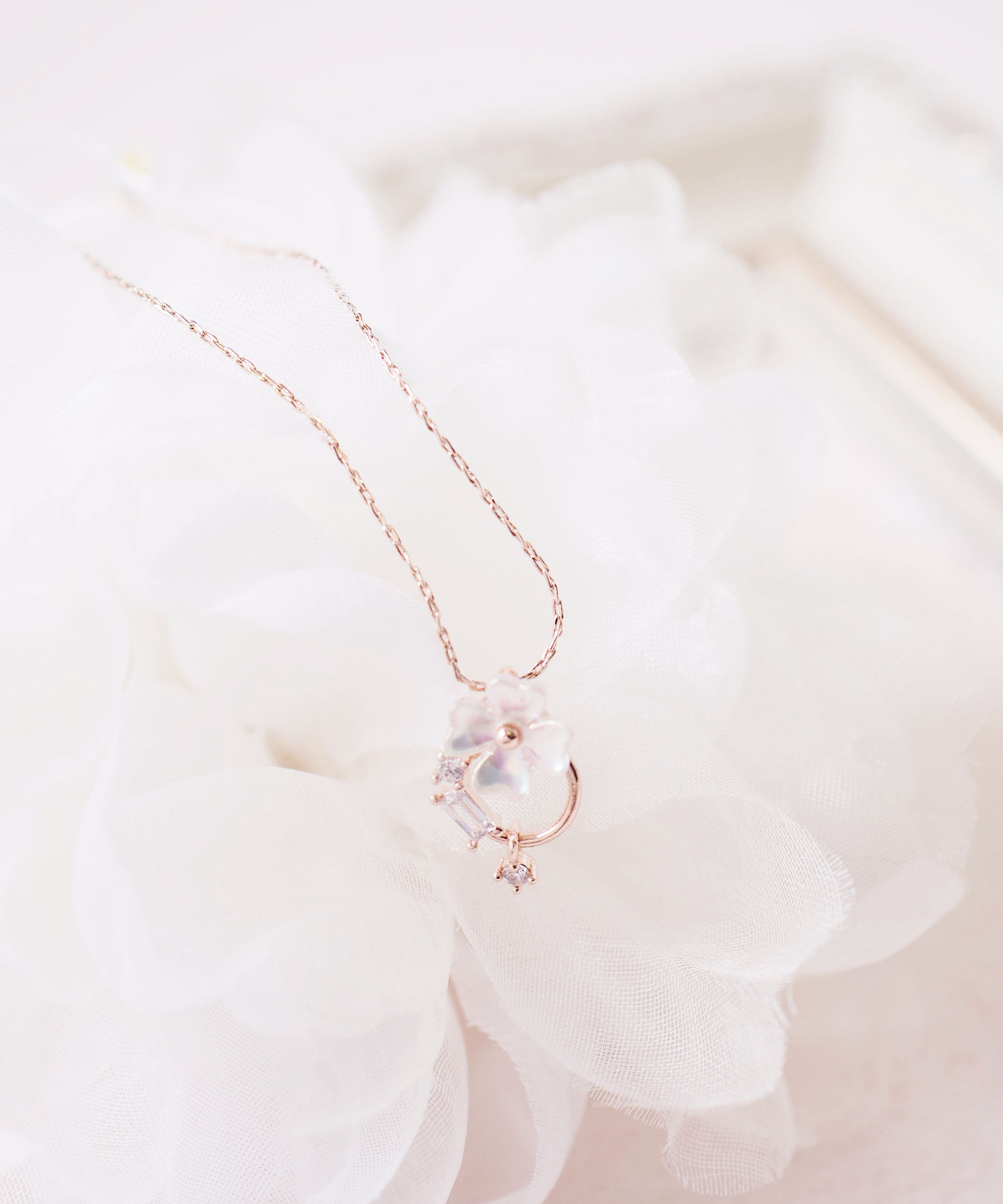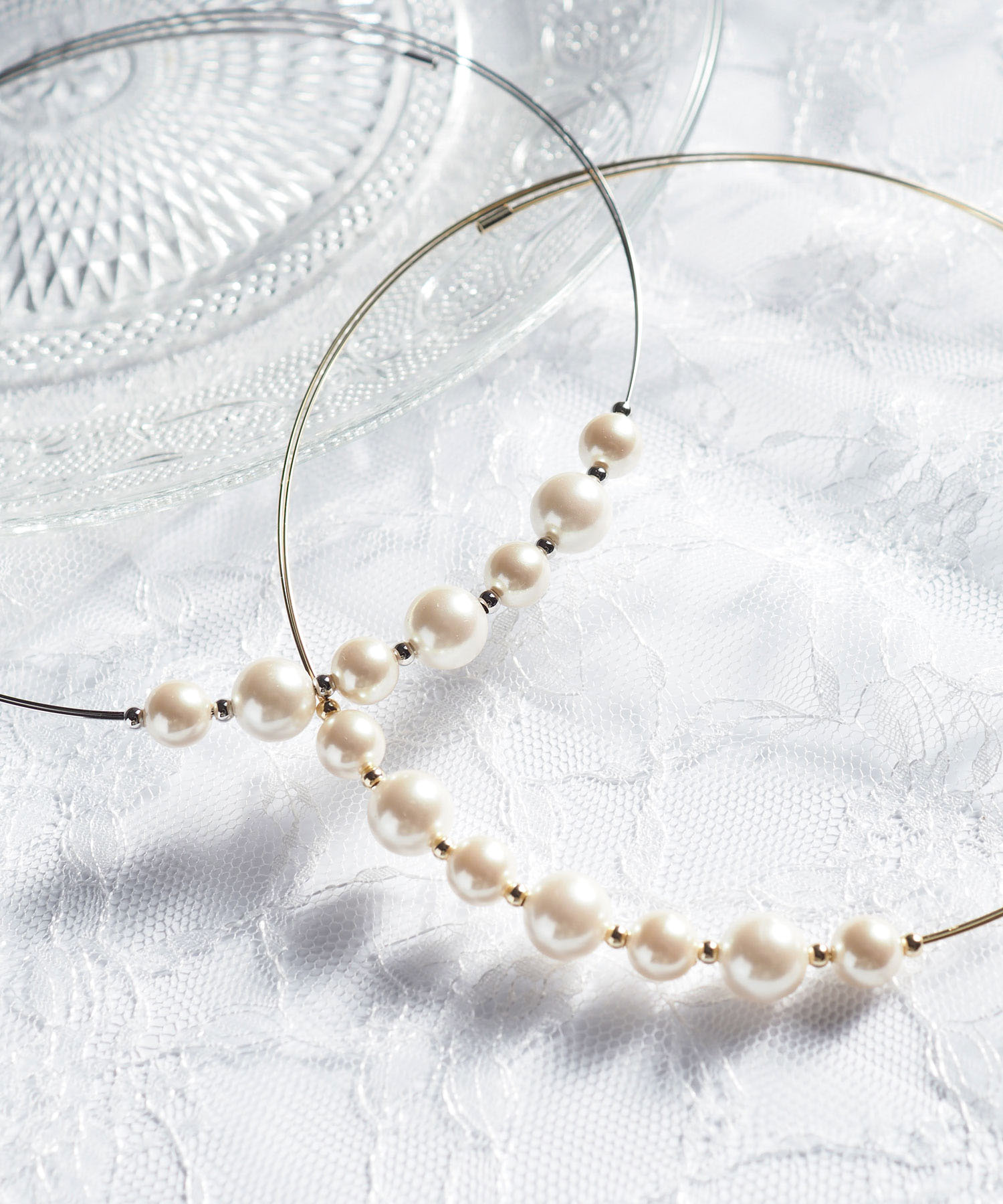 鎖骨のラインに沿うモチーフが首元をより美しくみせてくれます。
