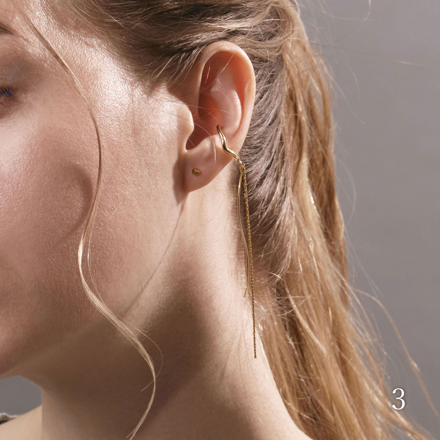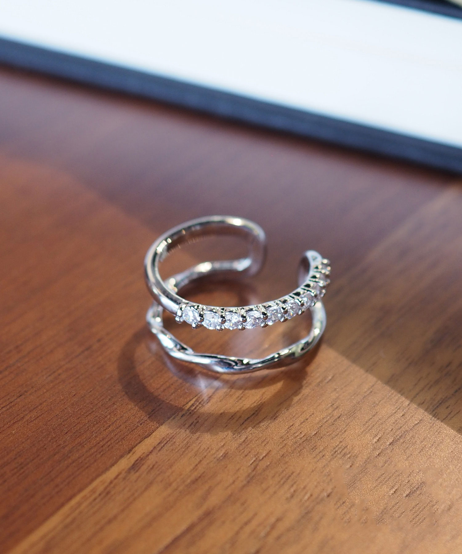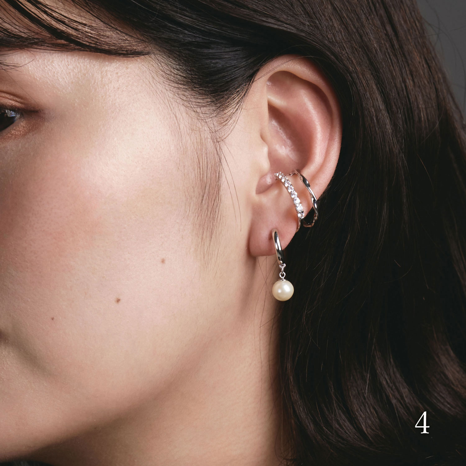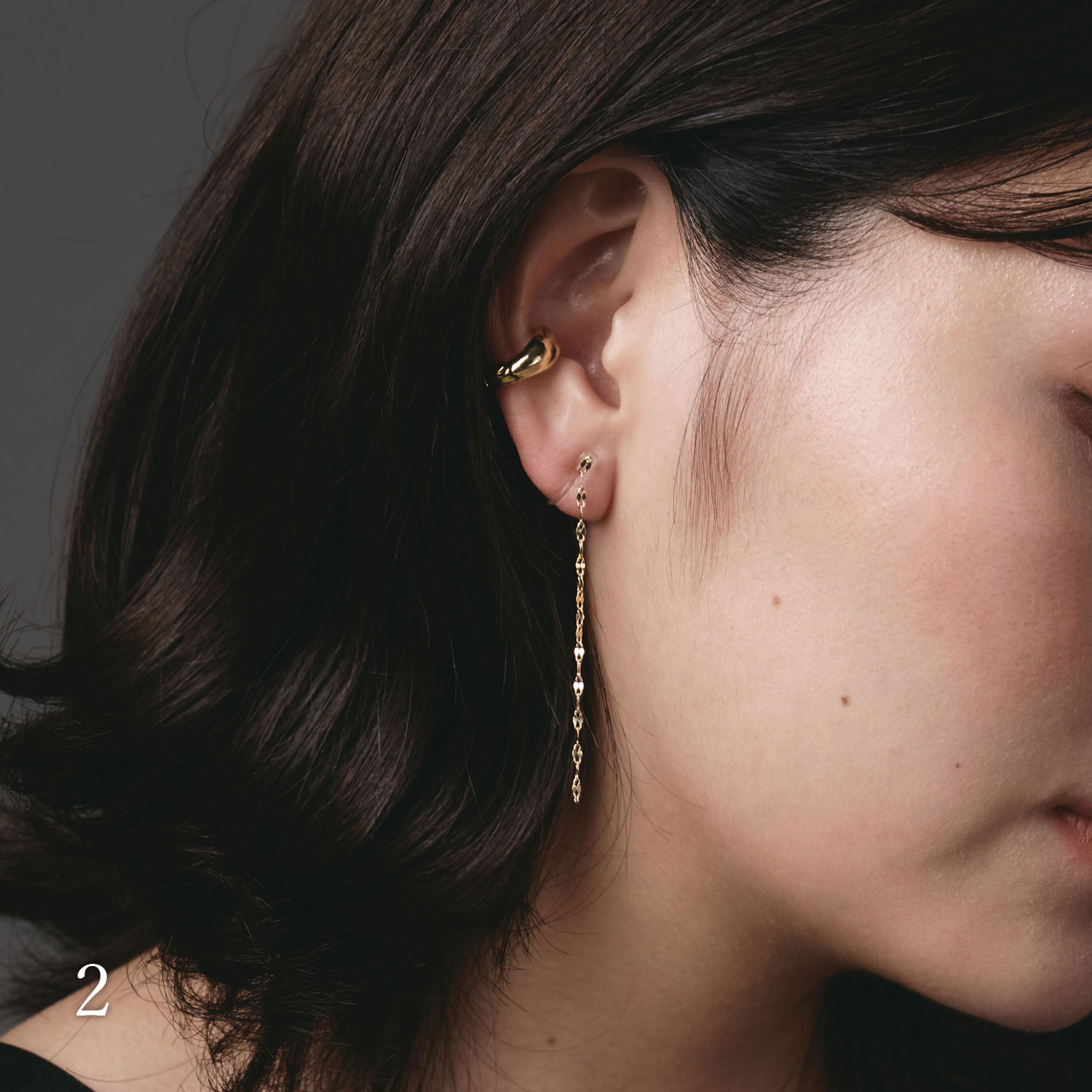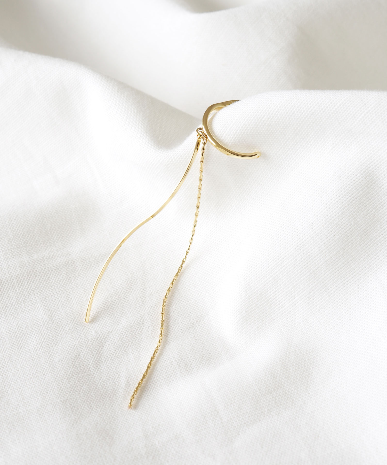 例えばスタッドピアスとシャラシャラ揺らめくイヤーカフ、耳に沿うイヤーカフとぶるんと揺れるイヤリングのように、静と動を組み合わせて。