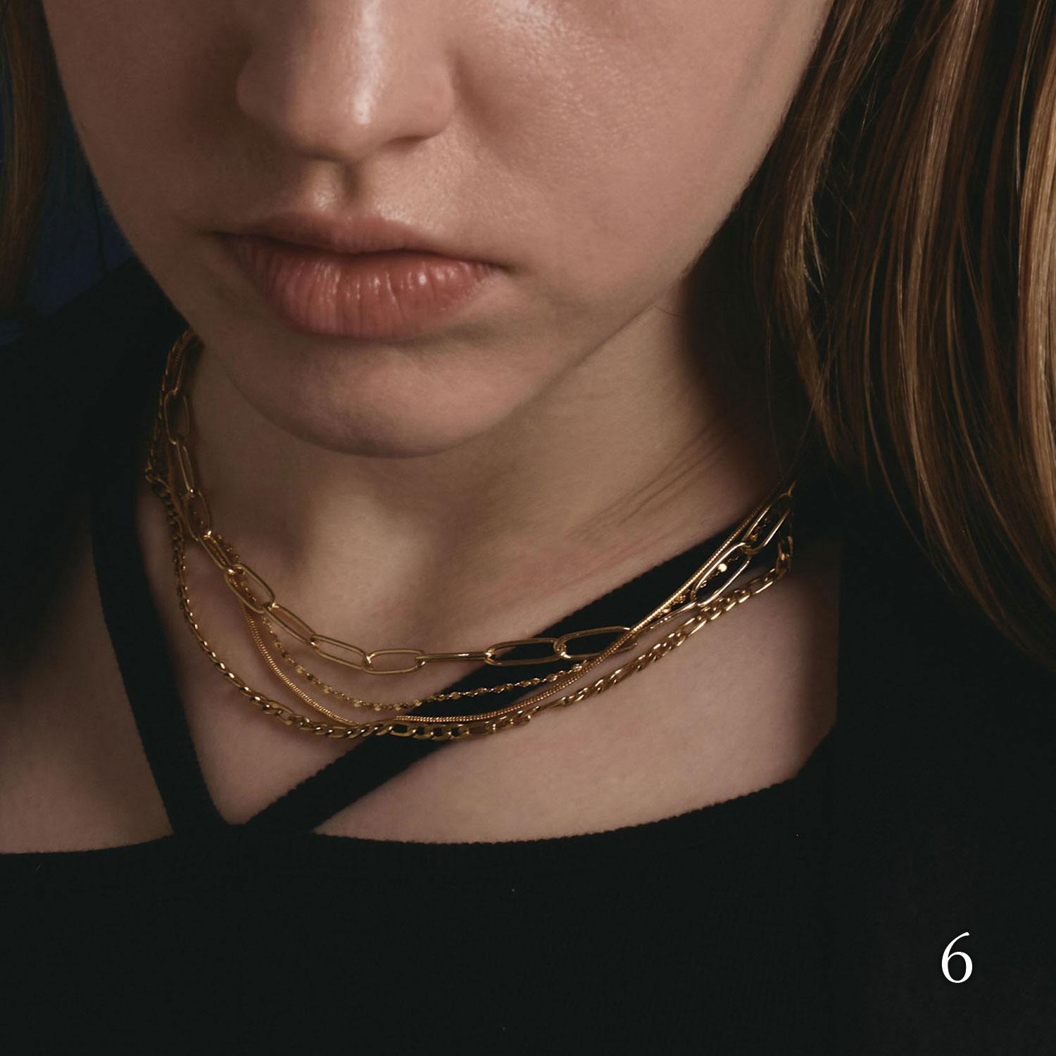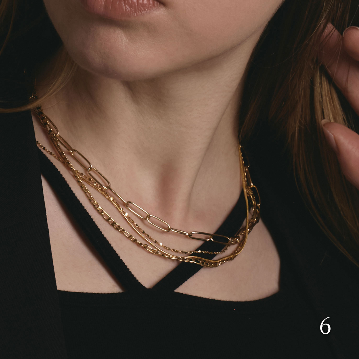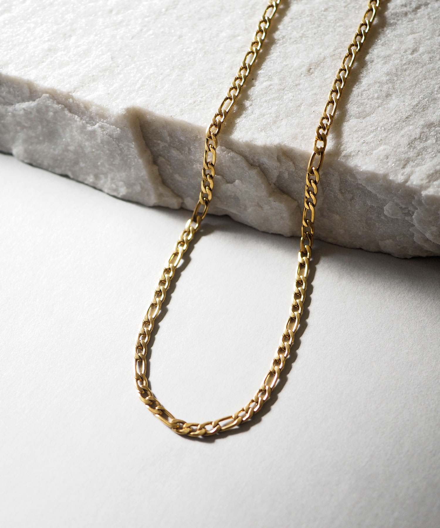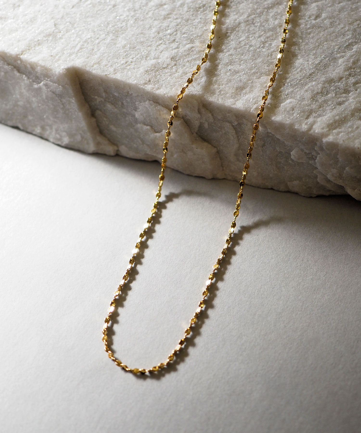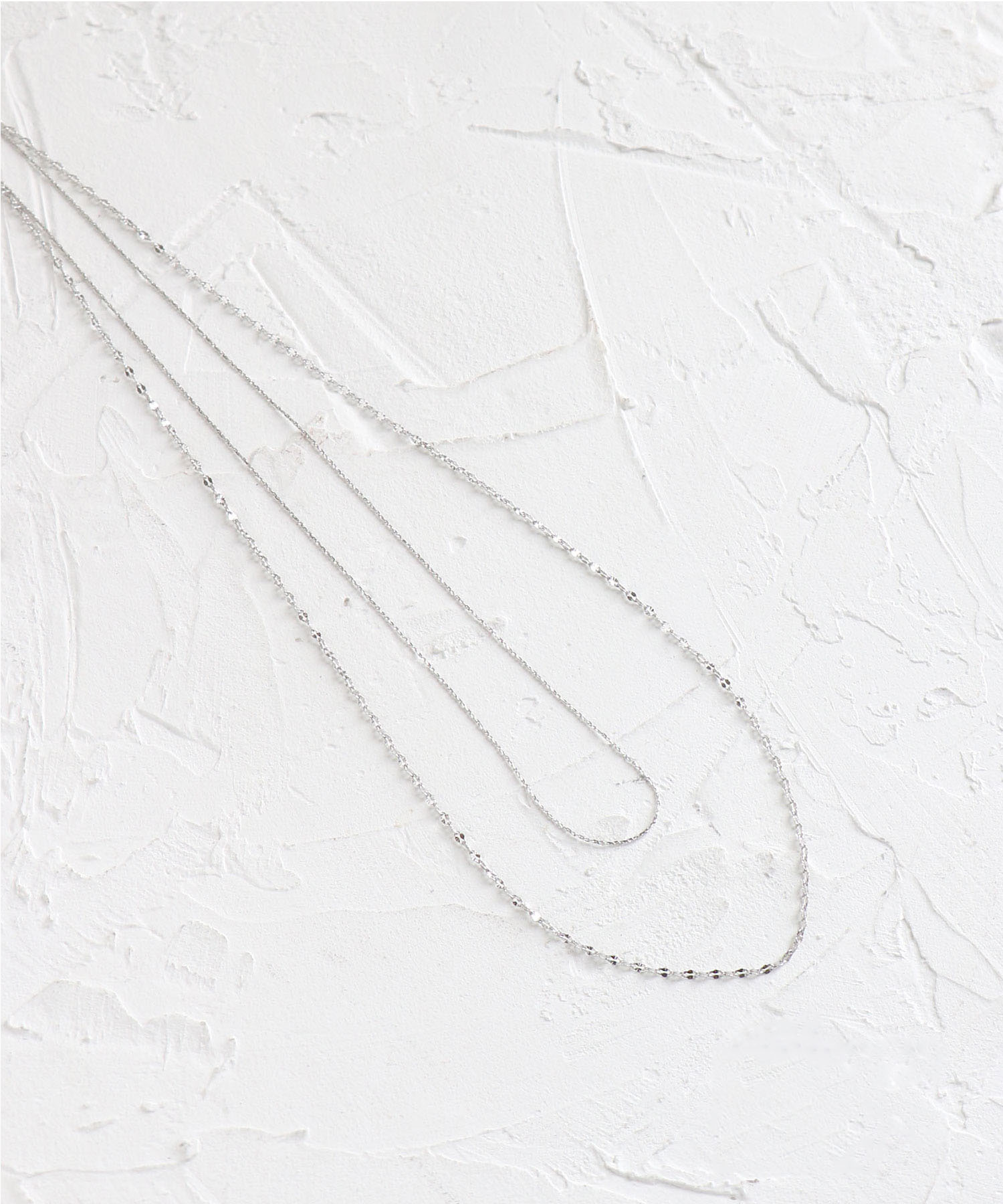 チェーンが主役のネックレスは1本ずつが繊細なので、思い切ってジャラっとつけても上品に仕上がります。