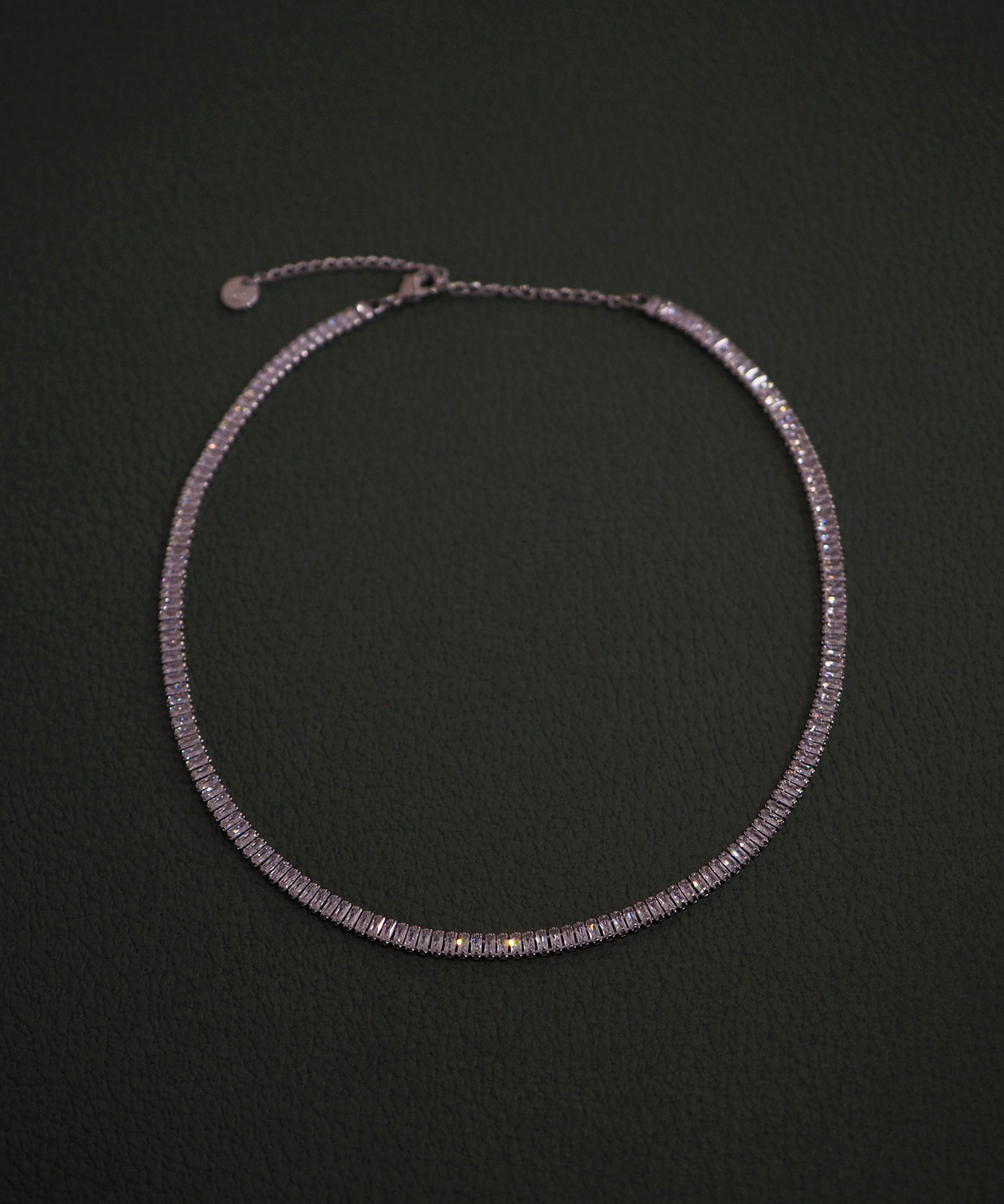 デコルテが開いたトップスにはチョーカーやショートネックレスで視線を集めて、女性らしく仕上げるのが◎。