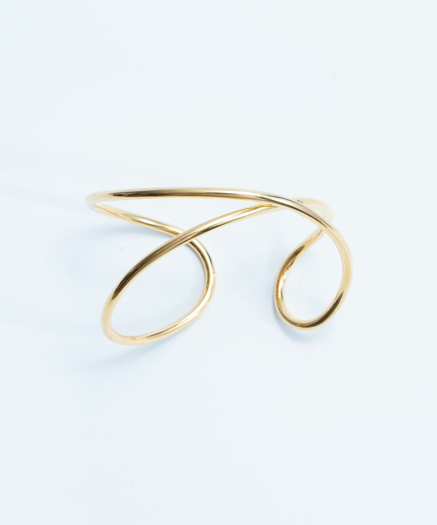 華奢なデザインにはゴールドメタルのリッチなバングルで締めると、ぐっとこなれ感が高まります。
