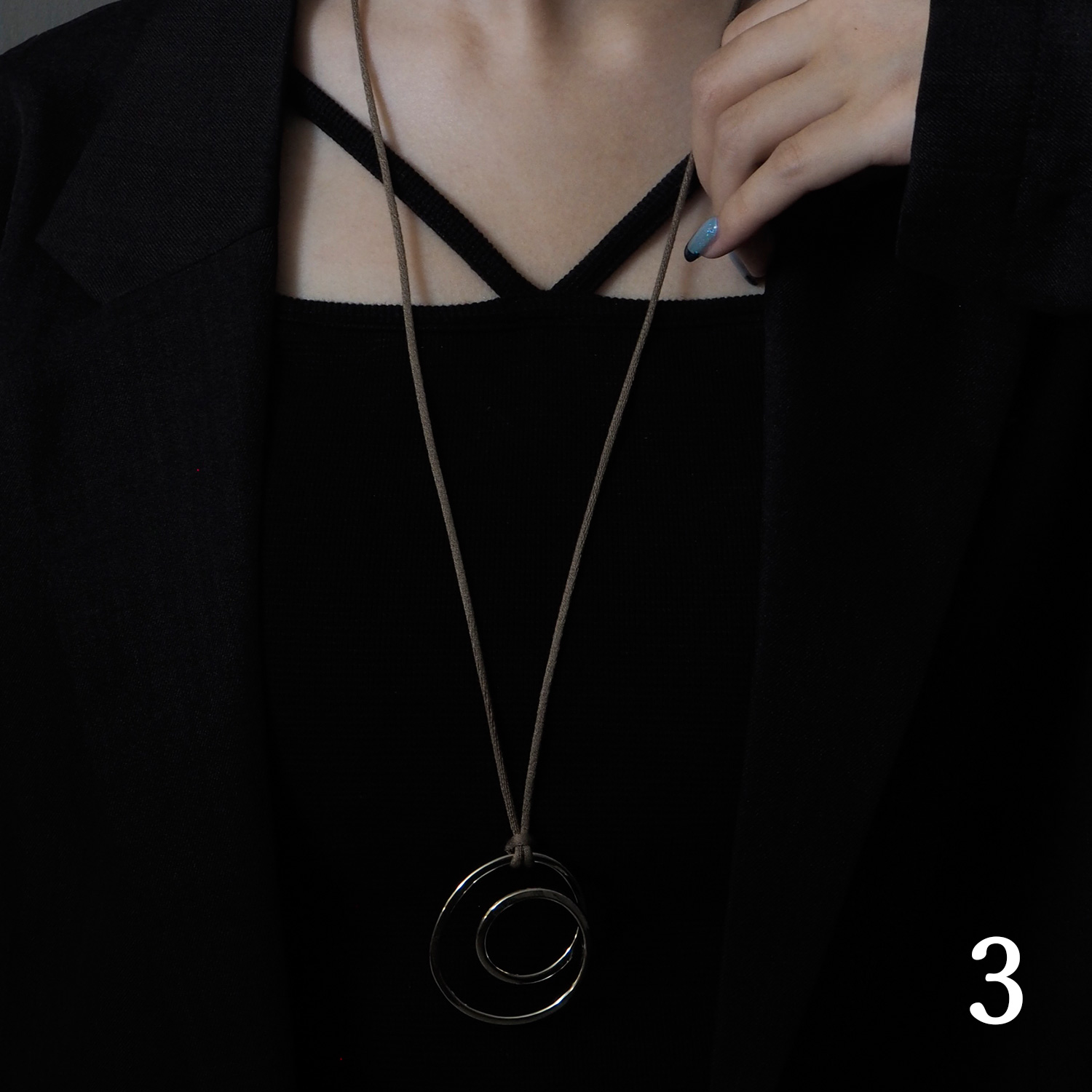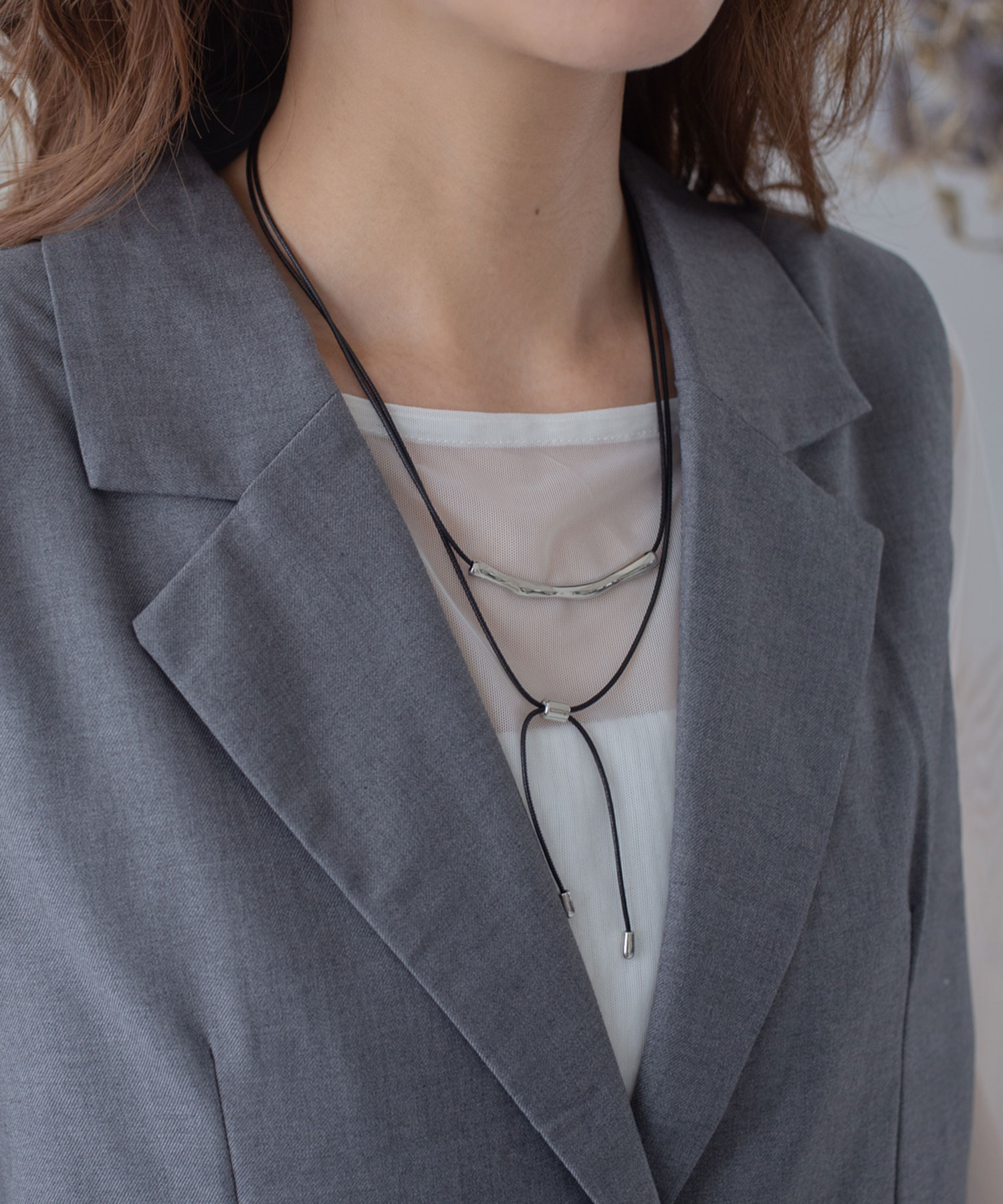 チェーン部分が紐やレザータイプのネックレスで、シックな印象を与えてくれる今年注目の「コードネックレス」。