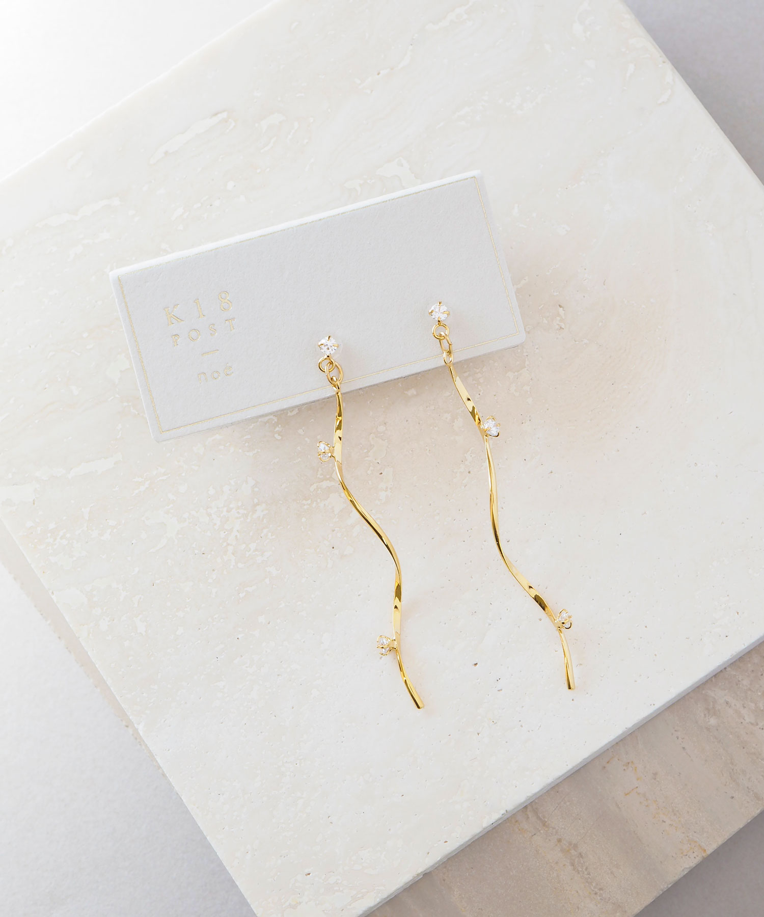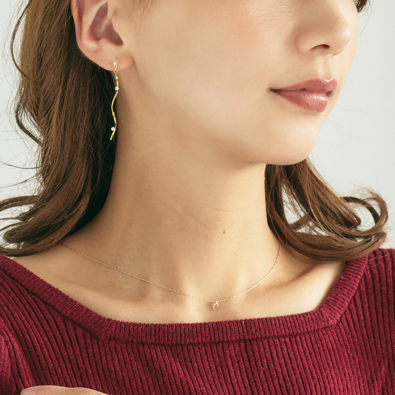 耳元で揺れるピアスやキュービックジルコニアの輝きが、品のある女性らしいコーディネートに導いてくれます。