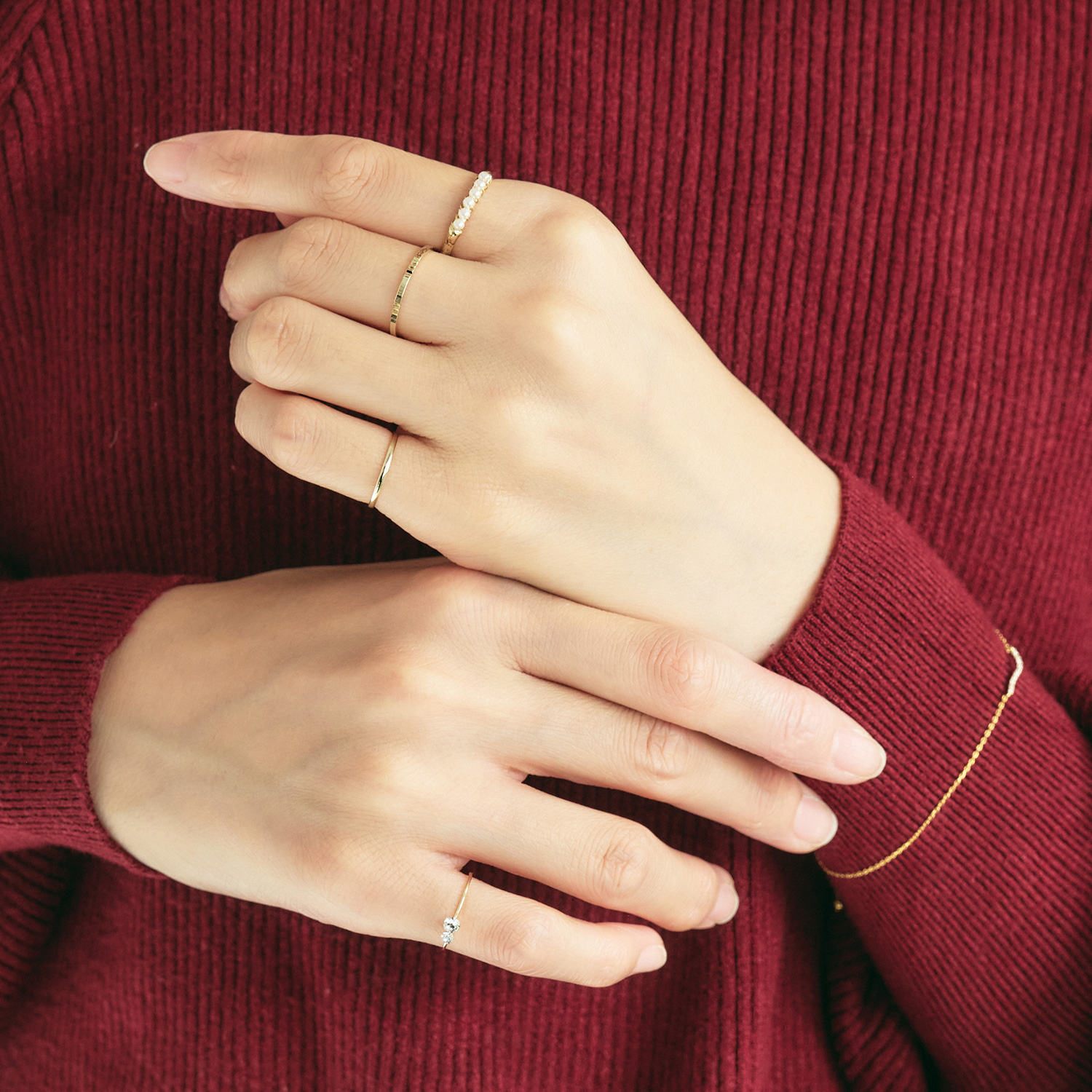 今年のラッキーモチーフとして注目されているスターモチーフのアクセサリーや、様々なデザインが1つで楽しめるセットリングをプラスすると、より華やかさのあるクリスマスコーデが完成します。