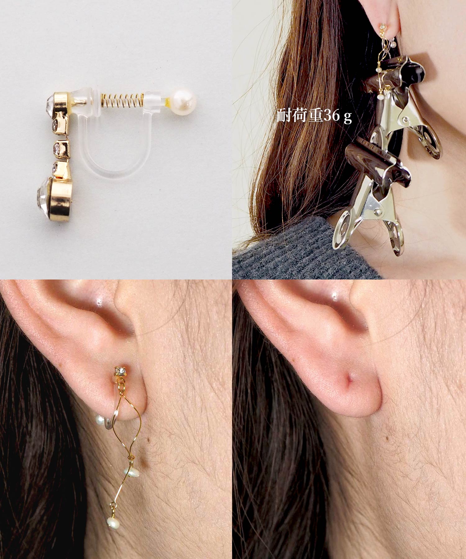 ダントツの落ちにくさを誇ったのクリップイヤリング。耳に触れるパーツの広さと、痛みを和らげるためのシリコン素材によって実現されています。その高いホールド力のおかげで、存在感のある「映え」デザインが豊富に揃っているのも特長です。