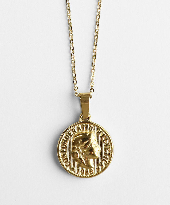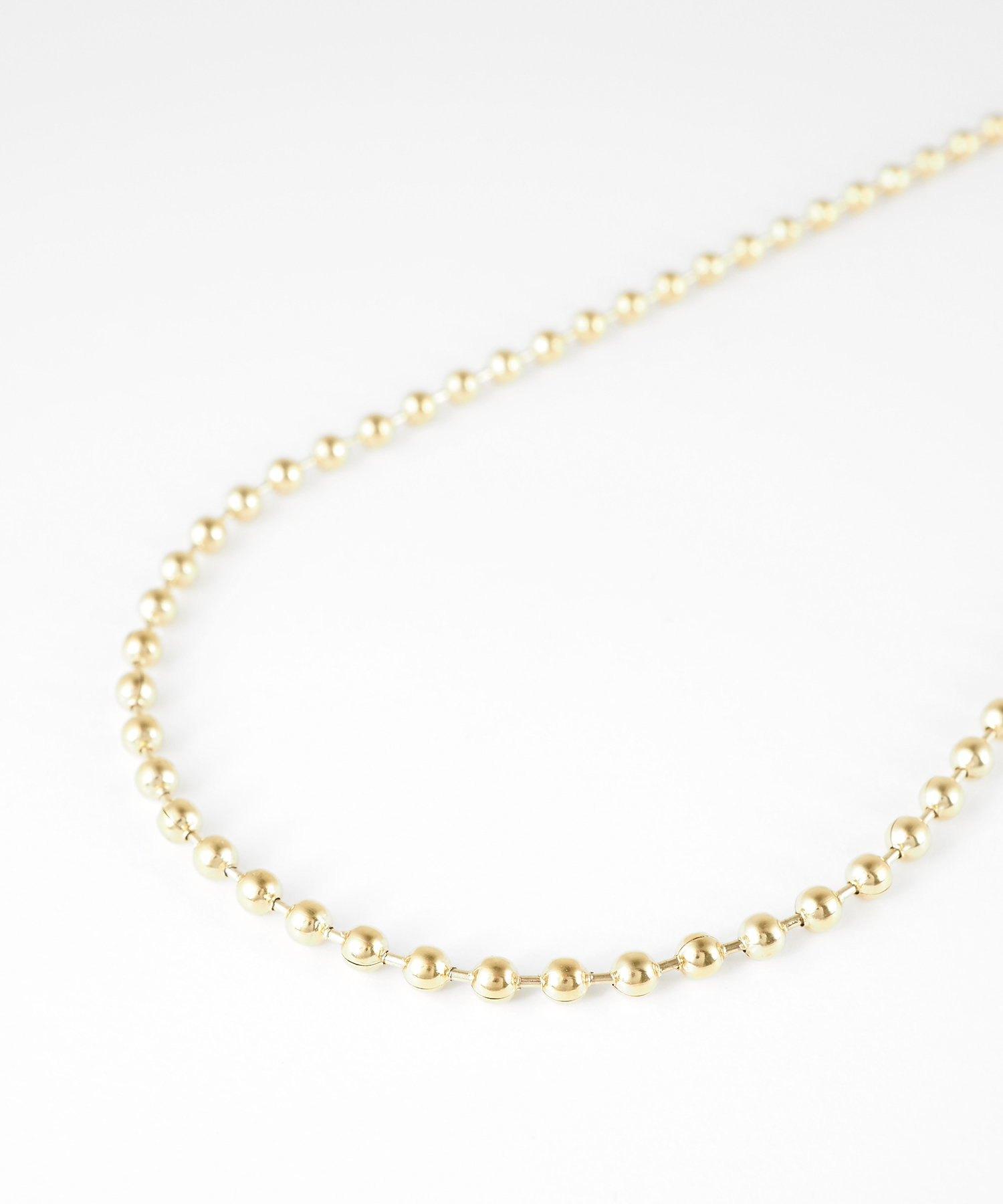 顔まわりを彩るネックレスは主役級の存在感を放ち、コーディネート全体の印象もワンランクアップ。シンプルなTシャツやタートルニットに合わせると、バランスの良いスタイルに仕上がります。