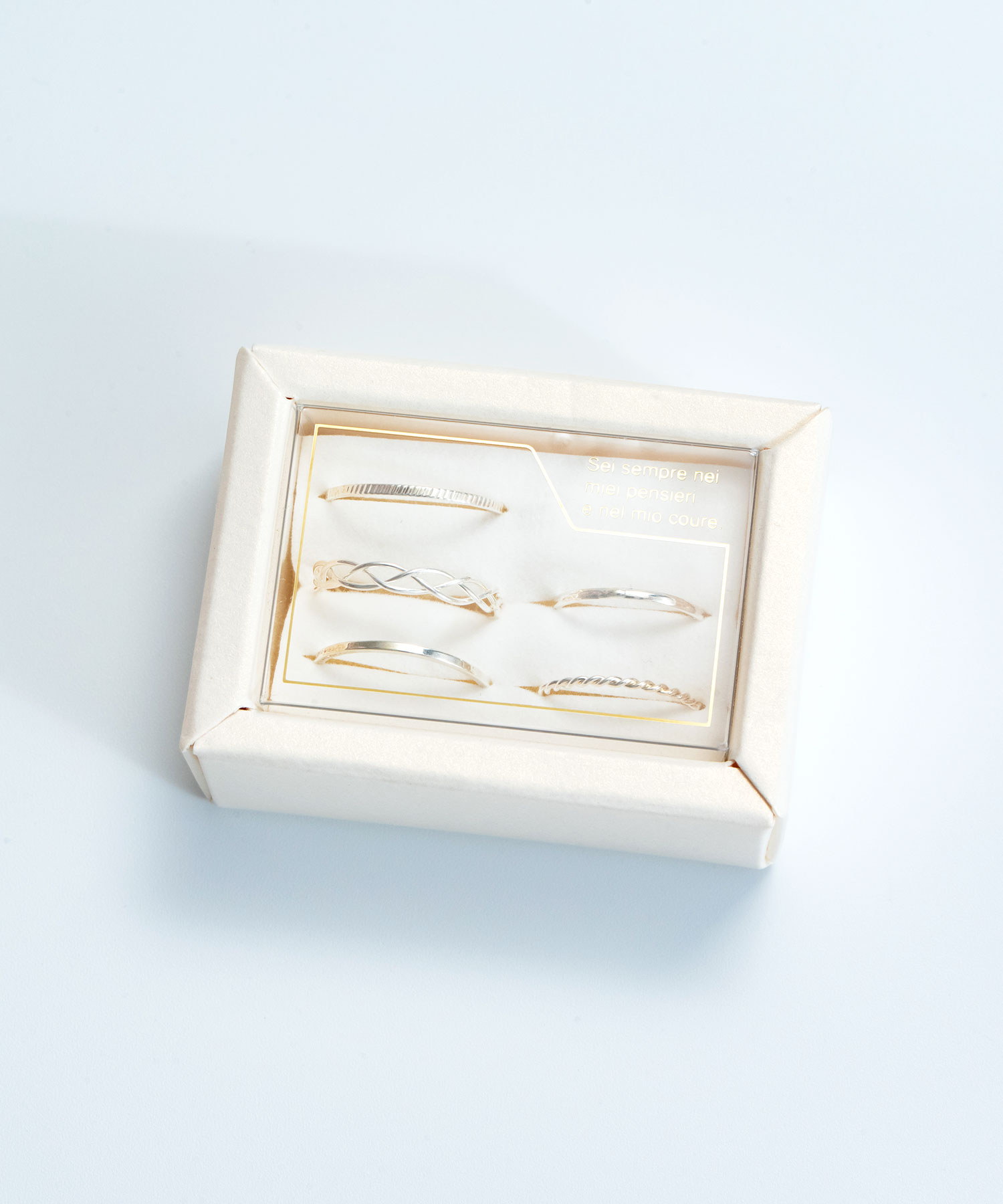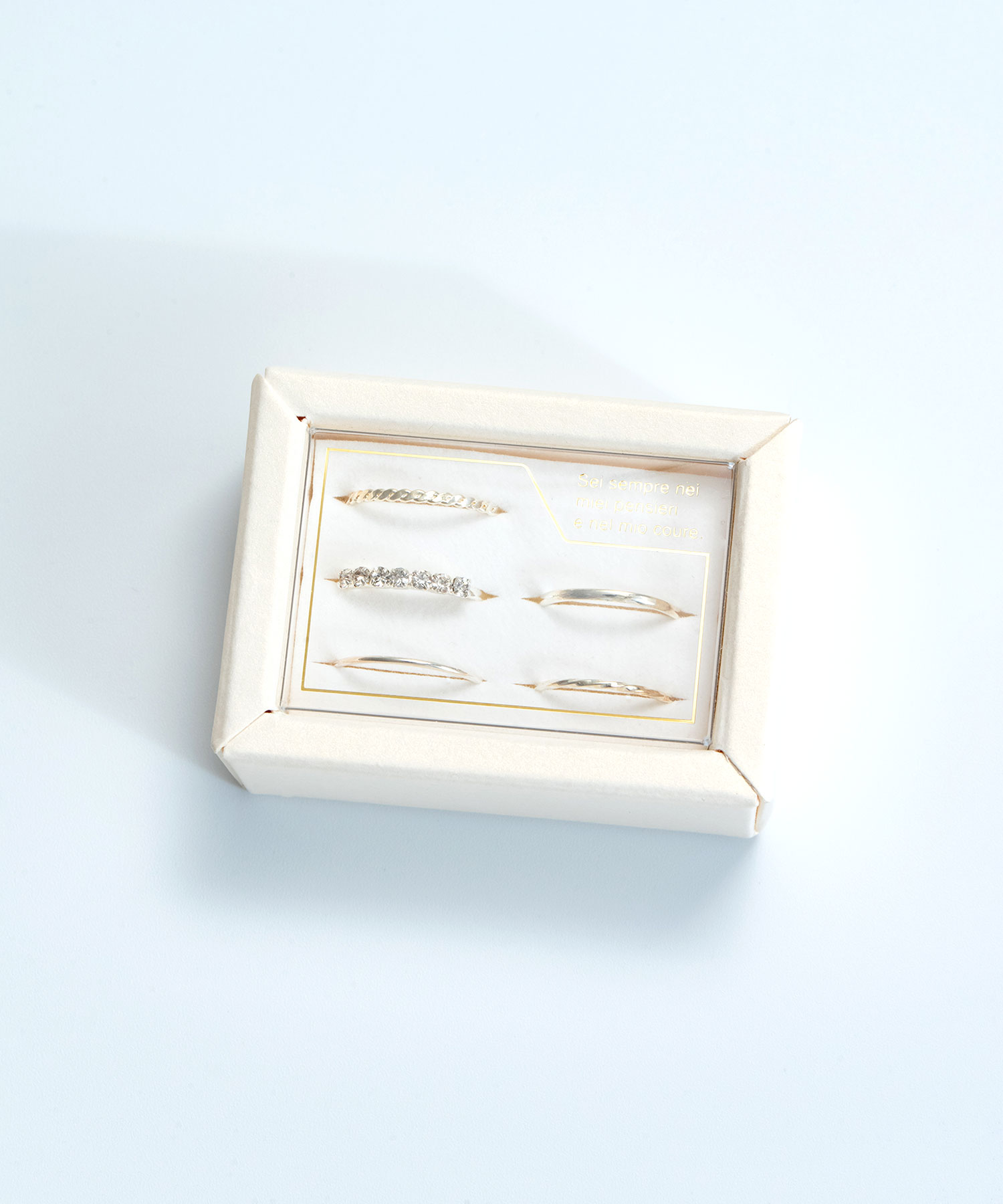 大粒のキュービックジルコニアは照明に照らされ華やぎのアクセントをもたらし、ボリュームピアスは顔周りにメリハリを与えます。また、2wayリングやダブルフィンガーリングで手元にトレンド感をプラスし、コーディネートを自在に楽しめます。