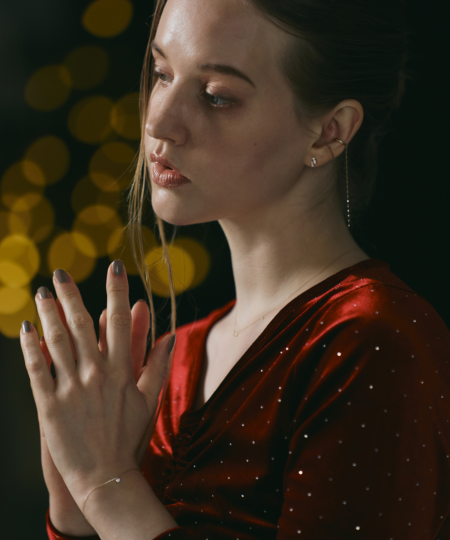 繊細なチェーンとキュービックジルコニアのジュエリーは、イルミネーション鑑賞に最適。