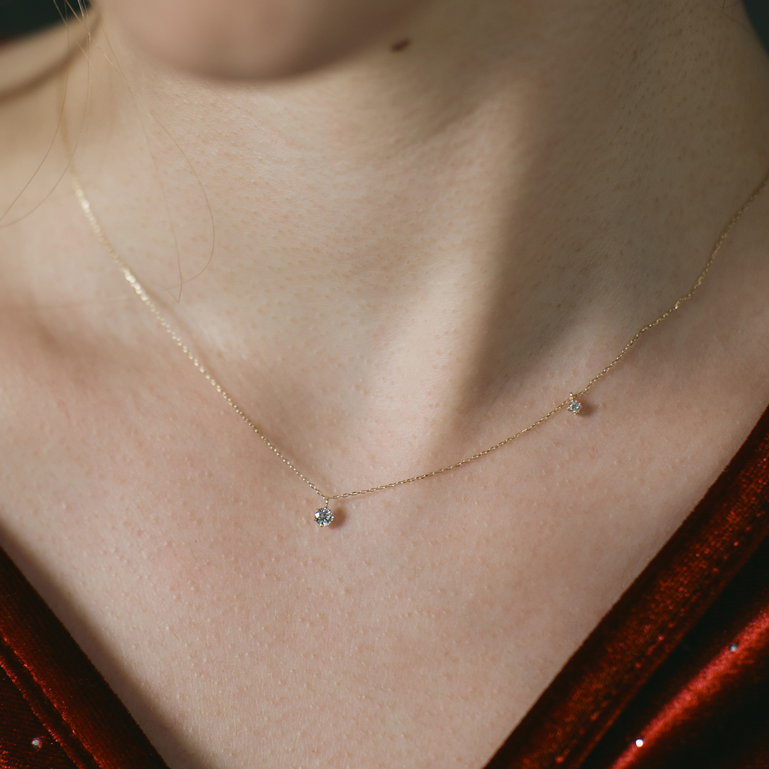 繊細なチェーンとキュービックジルコニアのジュエリーは、イルミネーション鑑賞に最適。