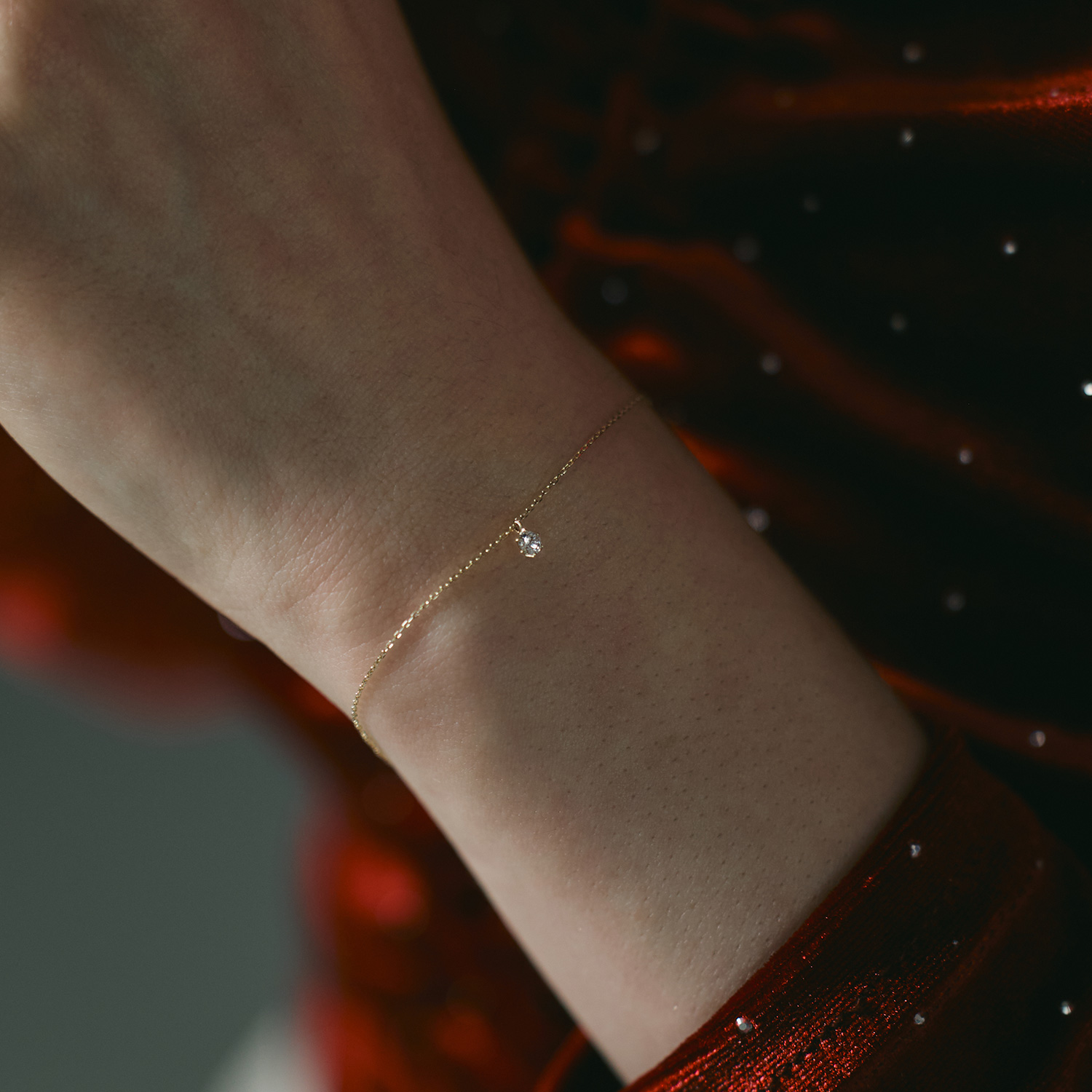 揺れるピアスやイヤーカフは光を反射し、顔まわりに輝きを添え、華奢なネックレスやブレスレットは、10金の輝きで上品な雰囲気を演出します。