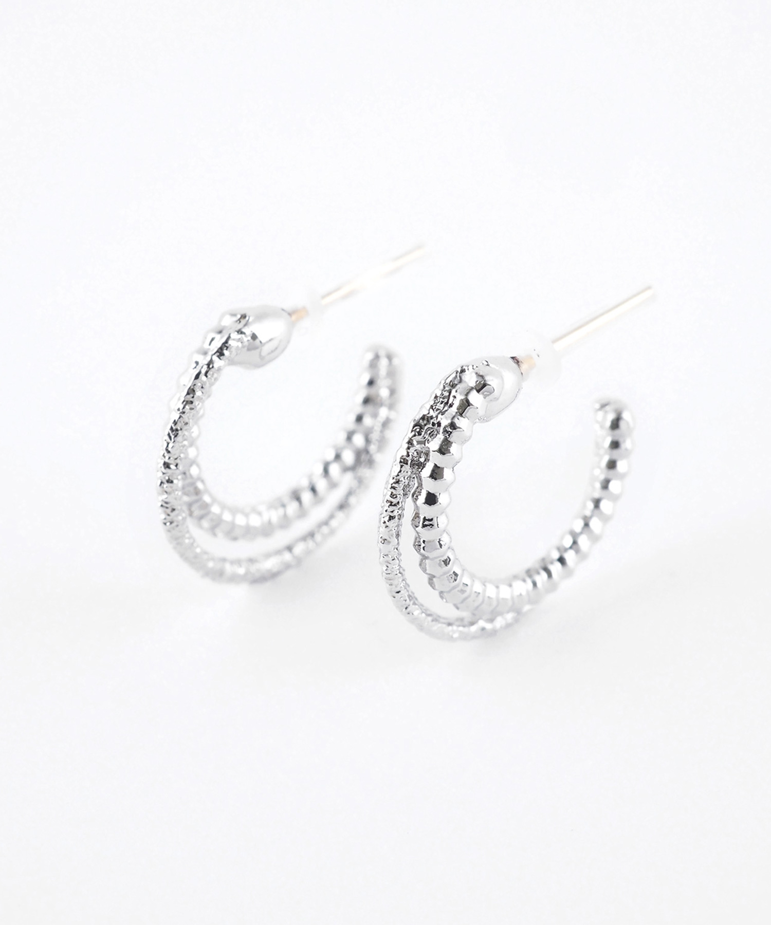 質感の違うダブルフープが耳元に奥行きをプラスし、注目のドット柄も、ループタイで引き締めれば一気にモードスタイルに変身!