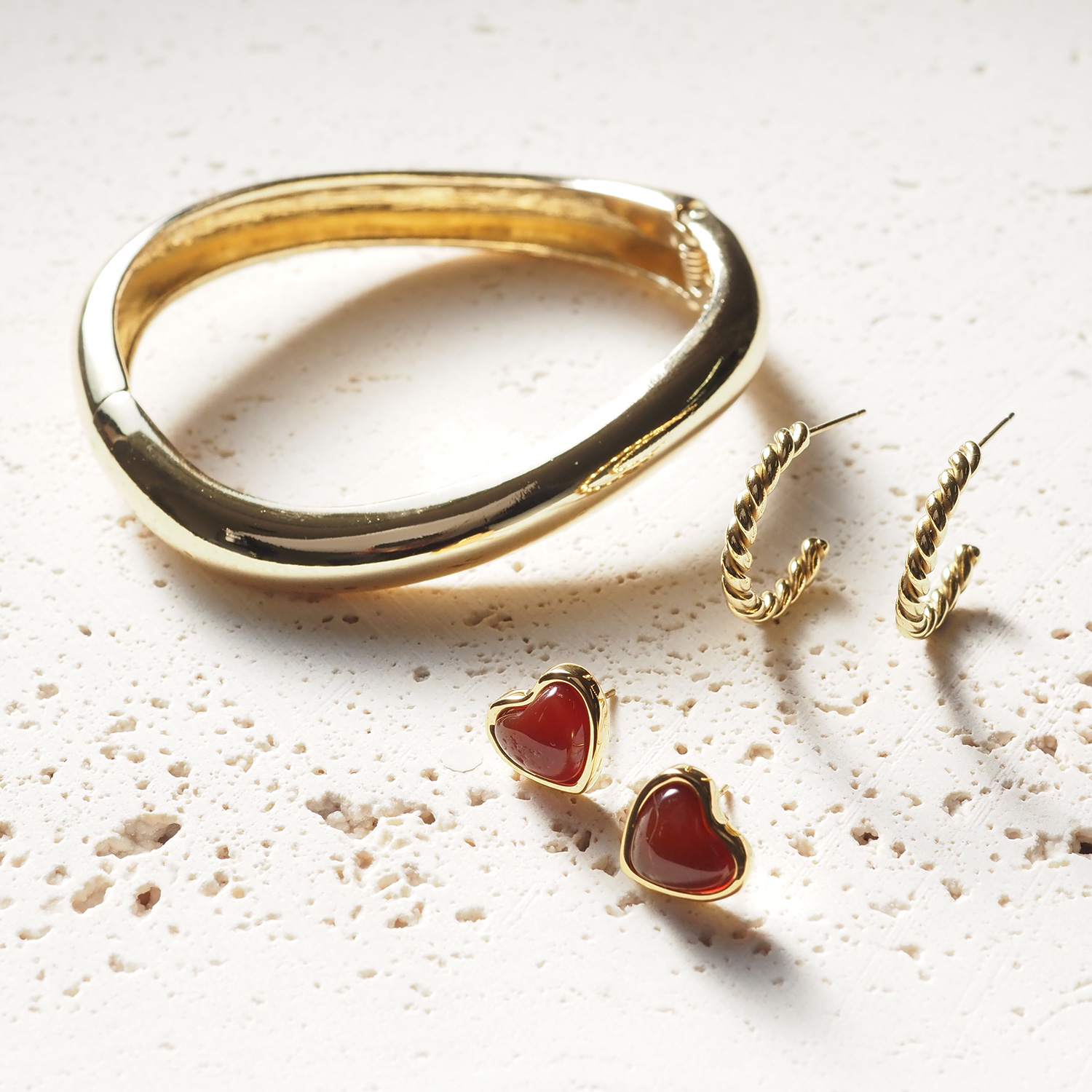 ねじりラインとハートの艶感をアクセントに、洗練されたゴールドに遊び心をプラスしたコーディネートです。