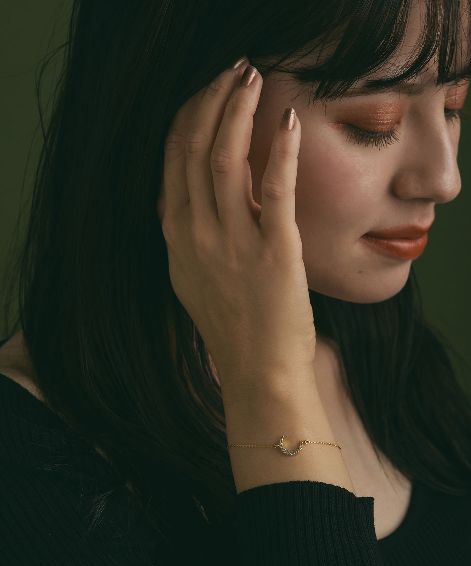 煌めくストーンが存在感を放つ、三日月モチーフのブレスレット。