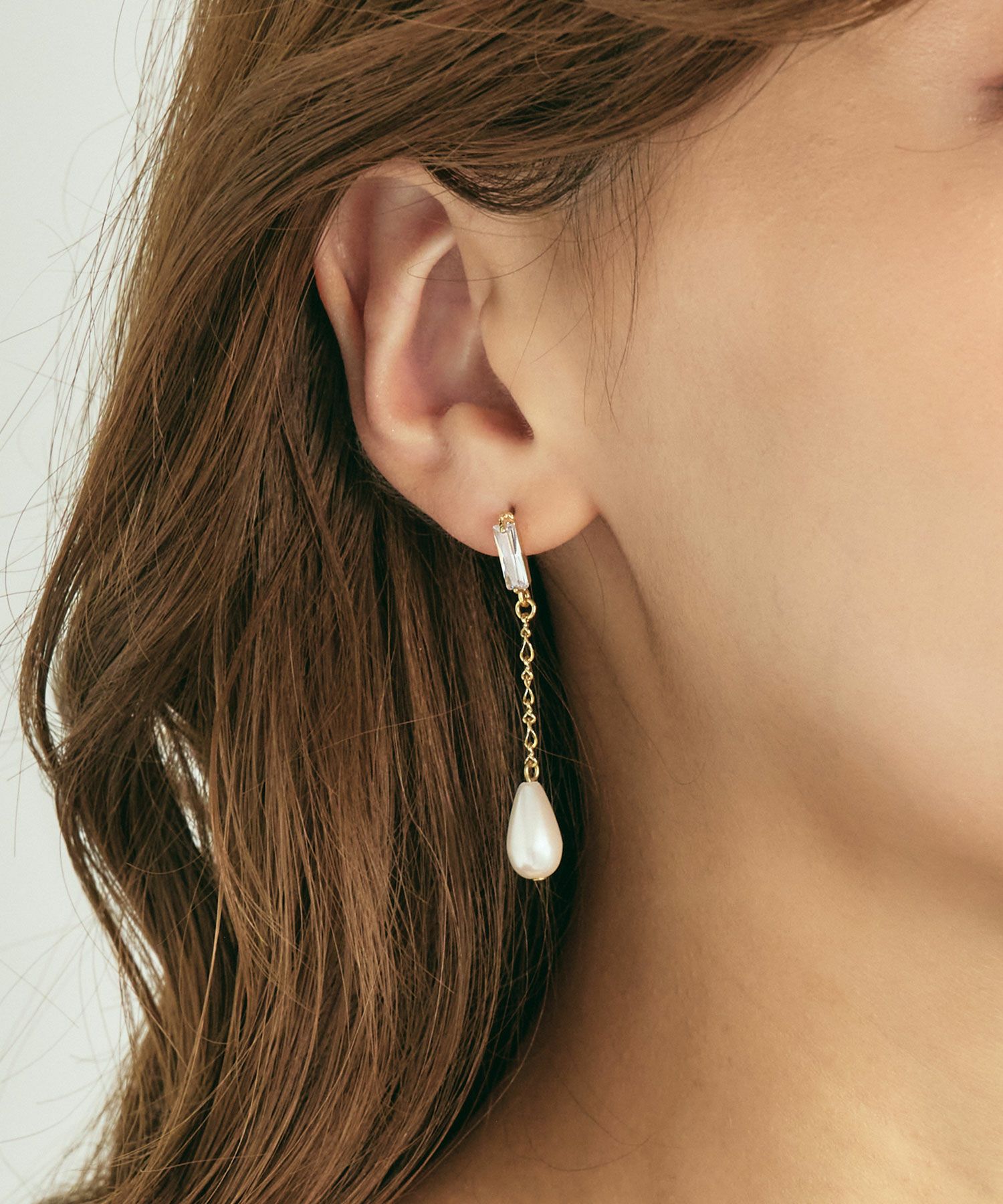 [ドロップパールチェーンジルコニアチタンポストピアス