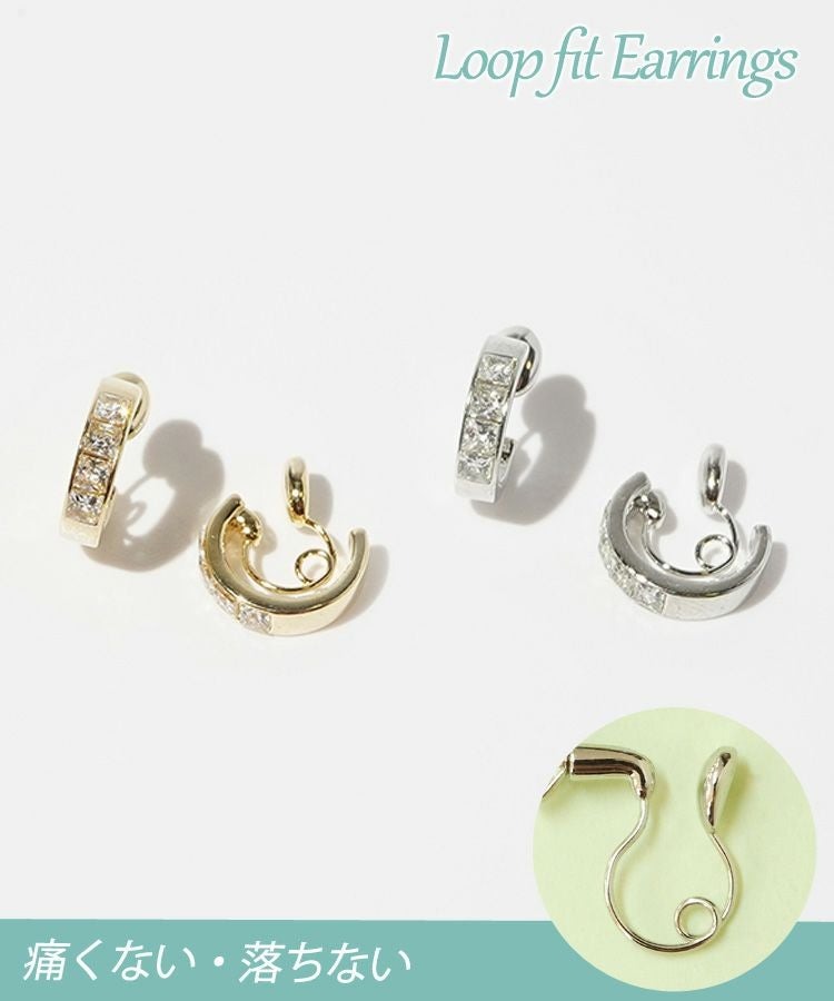 [ラインストーンとバックメタルバーのループフィットイヤリング