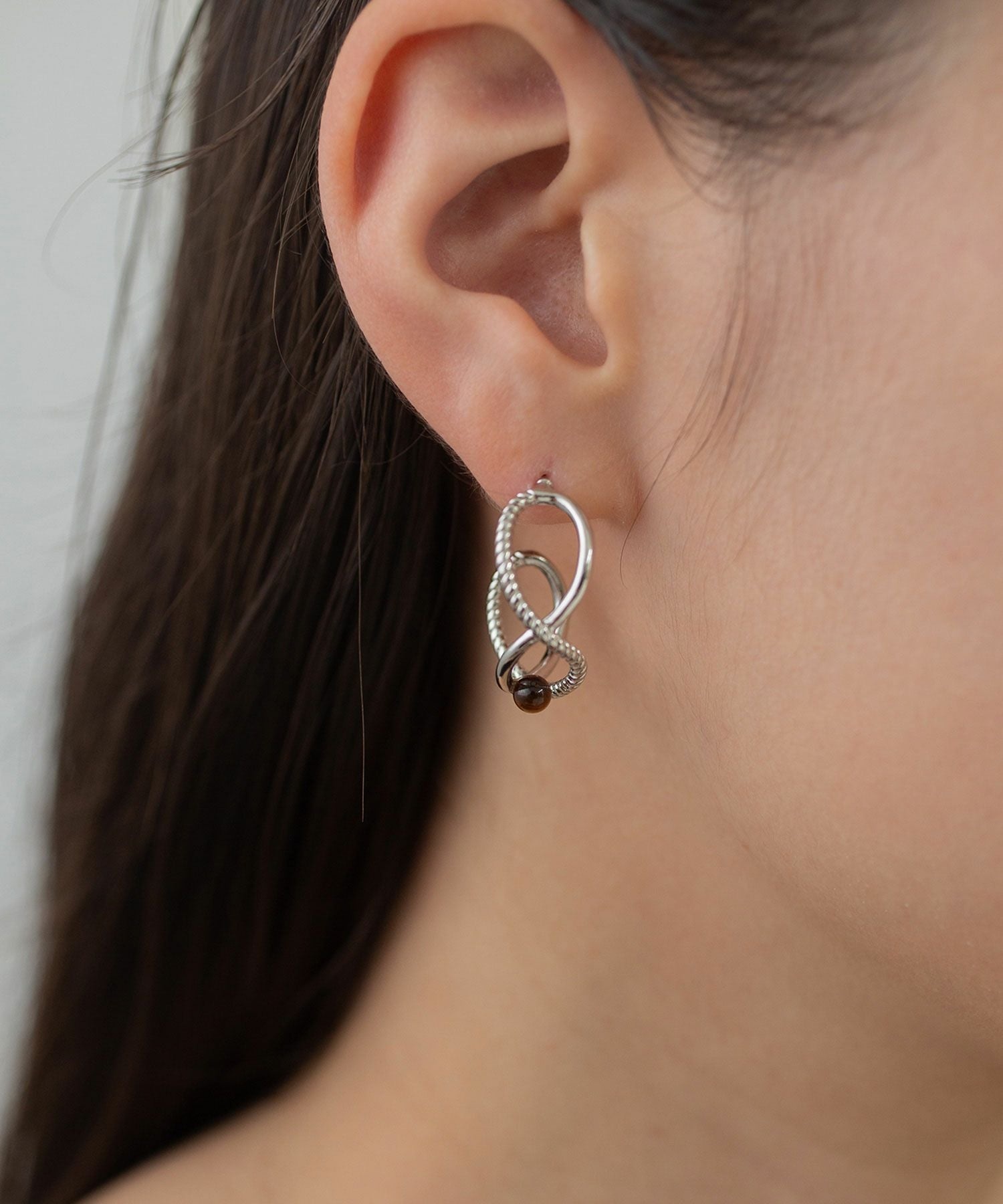 [ストーンエリプスクロスチタンポストピアス【MUK blossom stone】]